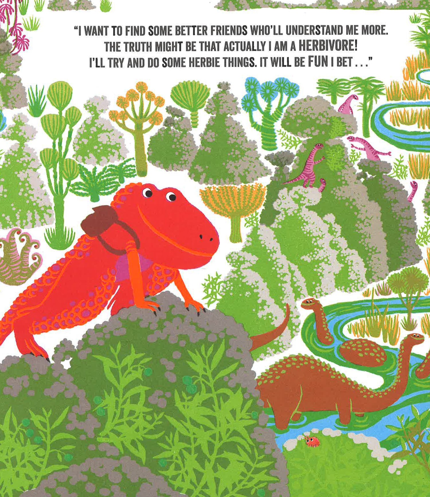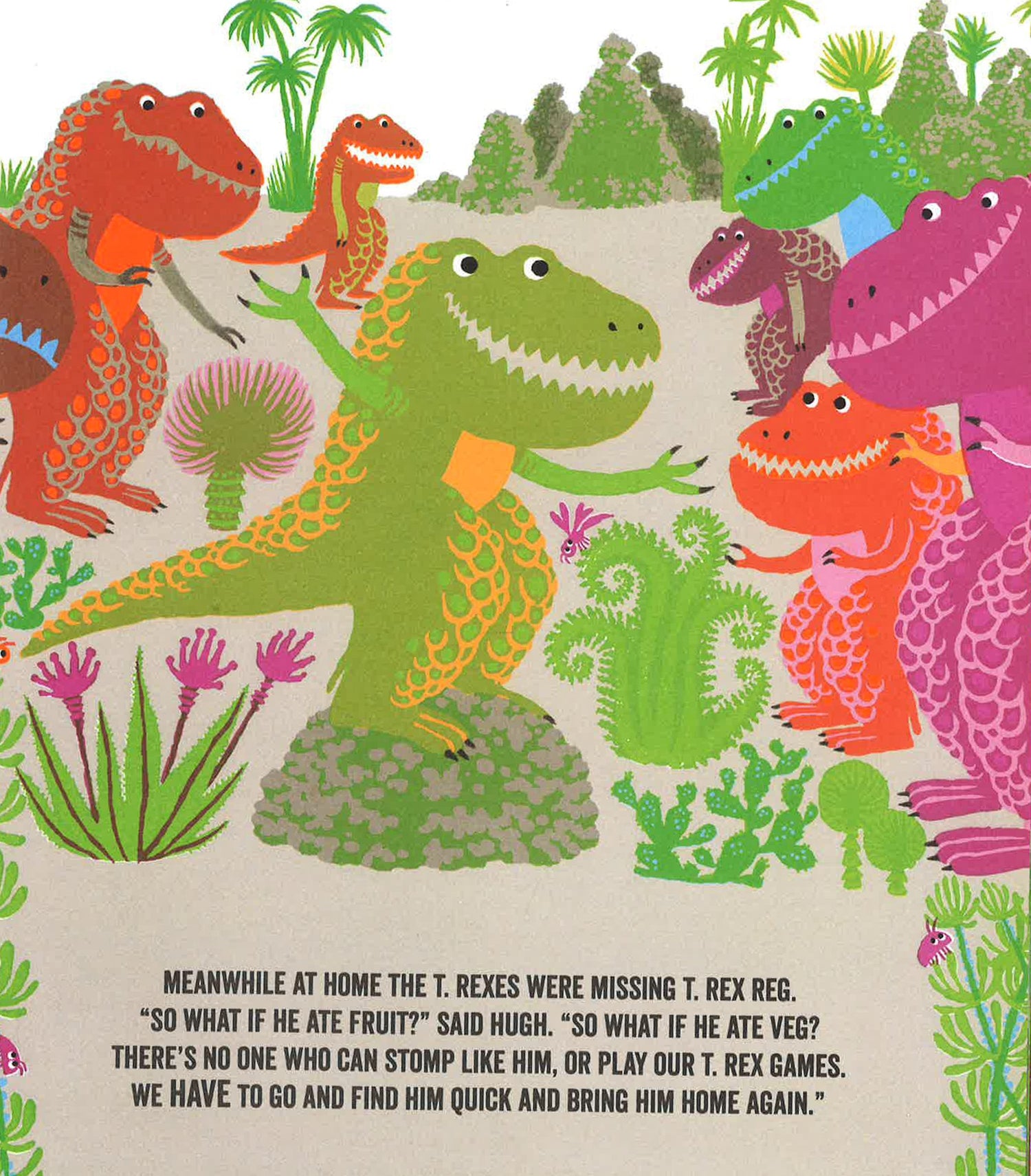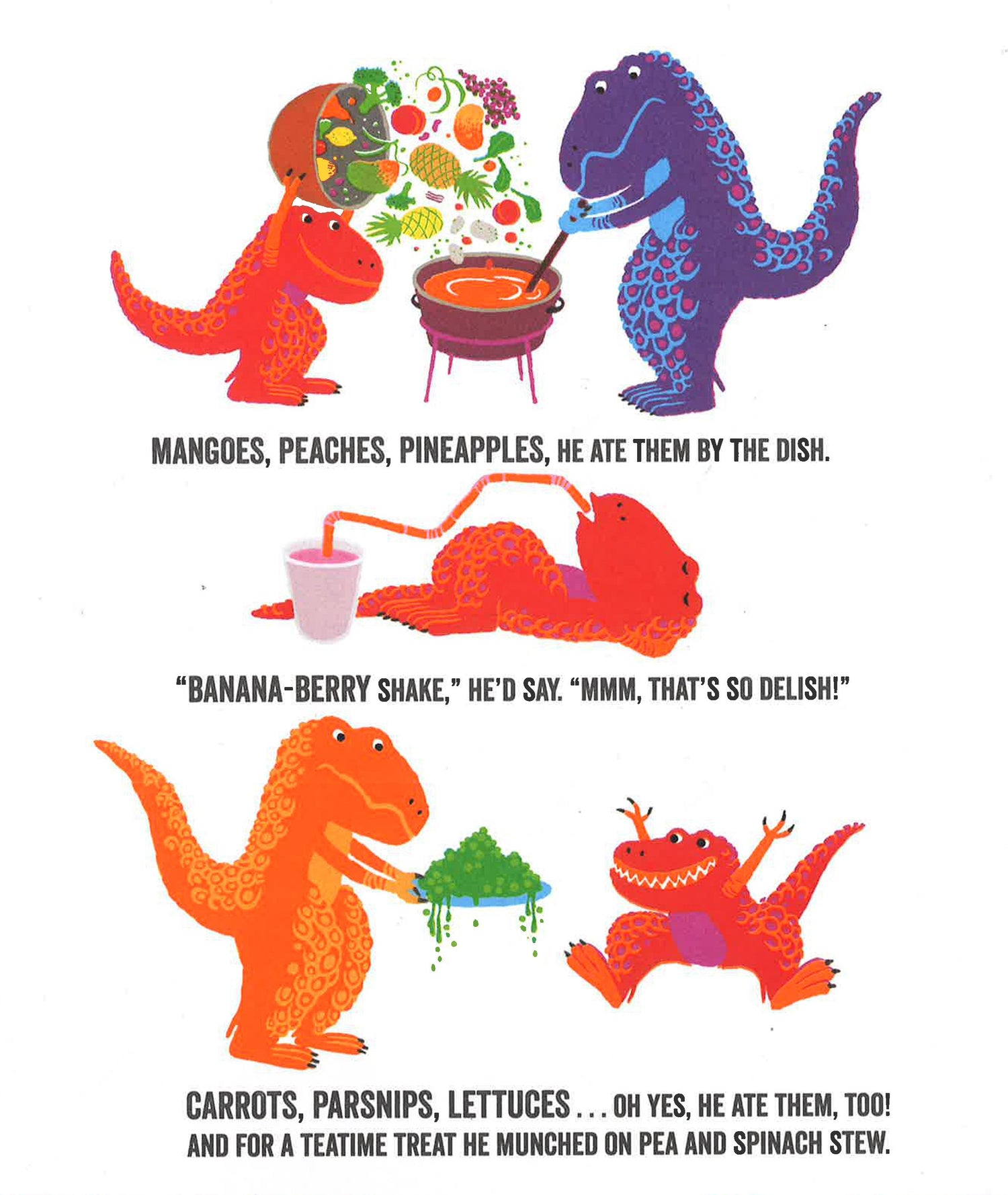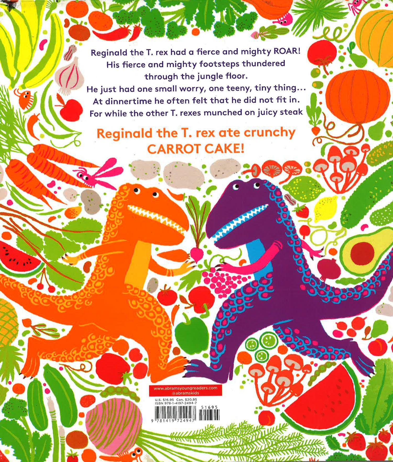 Reginald's a T. Rex just as fierce and ferocious as the rest: he's got a mighty roar, gnashing teeth, and all the speed a dino could need. But when it comes to mealtime, Reg would rather chow down on broccoli, beans, and greens than the juicy steaks his paleo pals prefer. When Reginald realizes how different he is from the others, he hopes to find a place to fit in among the herbivores. He excitedly strikes out in search of a new herd, only to scare away the other dinosaurs as he charges to greet them. But when a falling boulder threatens the safety of Reg's old T. Rex clan, he'll show everyone what only a strong, vegetarian Tyrannosaurs rex can do. A celebration of vegetarianism, T. Veg is a rollicking laugh-out-loud tale about being unapologetically yourself.
