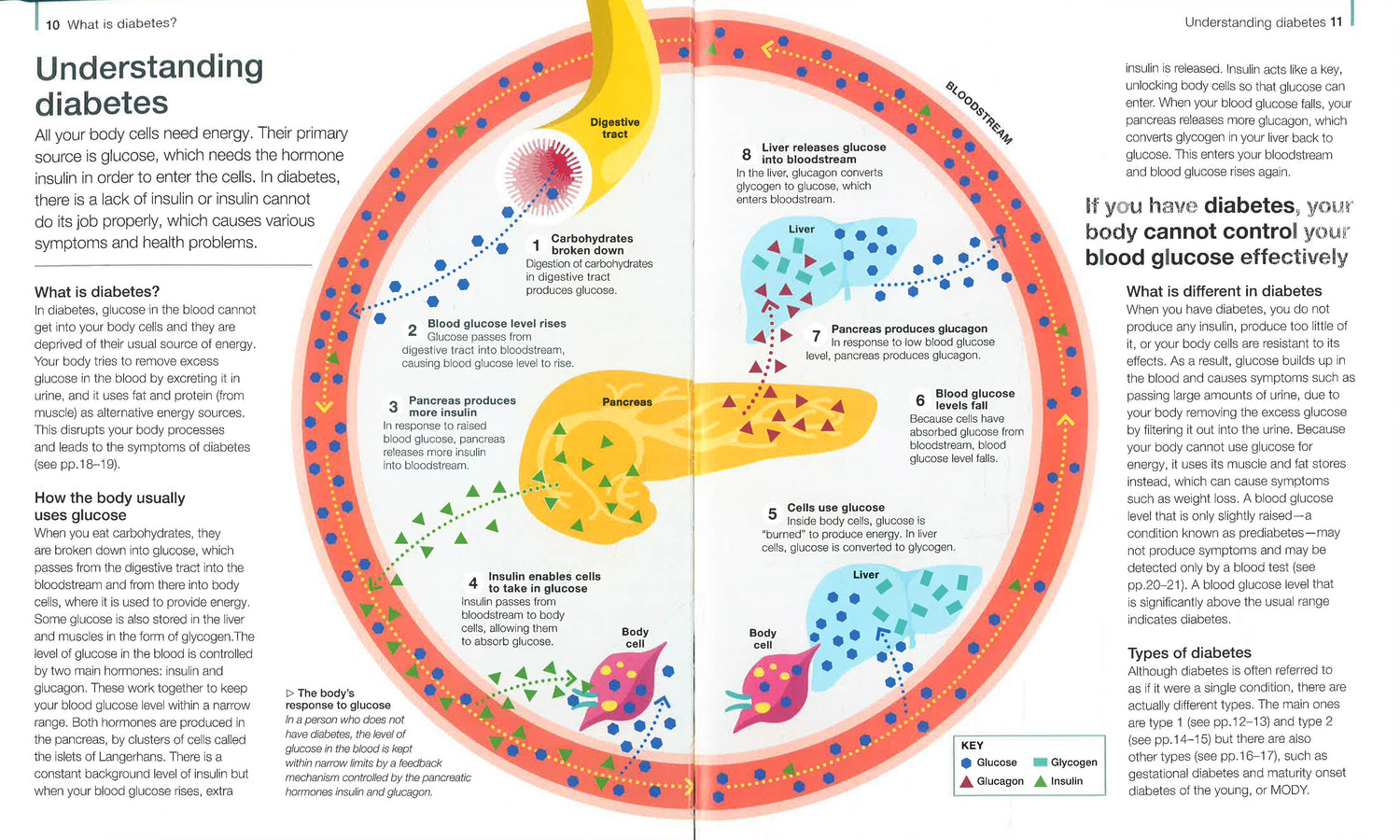 This book is packed with simple, easy-to-understand explanations of how diabetes works and practical, positive advice for preventing or living with it. Illustrated in full color throughout, it includes step-by-step illustrated sequences, flowcharts, and diagrams. Routines such as how to monitor and control blood glucose are explained in the clearest possible way. Find out how the types of diabetes differ, what signs to look out for, how to care for children with diabetes, how to reduce the risk of long-term complications, what to do in emergencies, and how to stay motivated and positive.