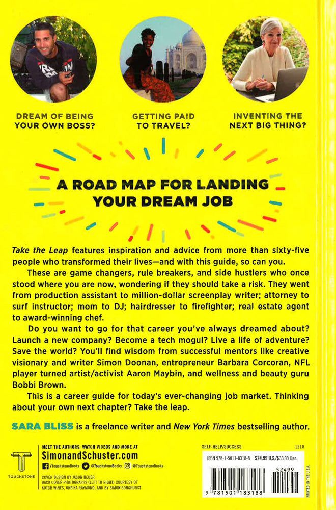 A road map for landing your dream job.Take the Leap features inspiration and advice from more than sixty-five people who transformed their lives-and with this guide, so can you. These are game changers, rule breakers, and side hustlers who once stood where you are now, wondering if they should take a risk. They went from production assistant to million-dollar screenplay writer; attorney to surf instructor; mom to DJ; hairdresser to firefighter; real estate agent to award-winning chef. Do you want to go for that career you've always dreamed about? Launch a new company? Become a tech mogul? Live a life of adventure? Save the world? You'll find wisdom from successful mentors like creative visionary and writer Simon Doonan, entrepreneur Barbara Corcoran, NFL player turned artist/activist Aaron Maybin, and wellness and beauty guru Bobbi Brown. This is a career guide for today's ever-changing job market. Thinking about your own next chapter? Take the leap.