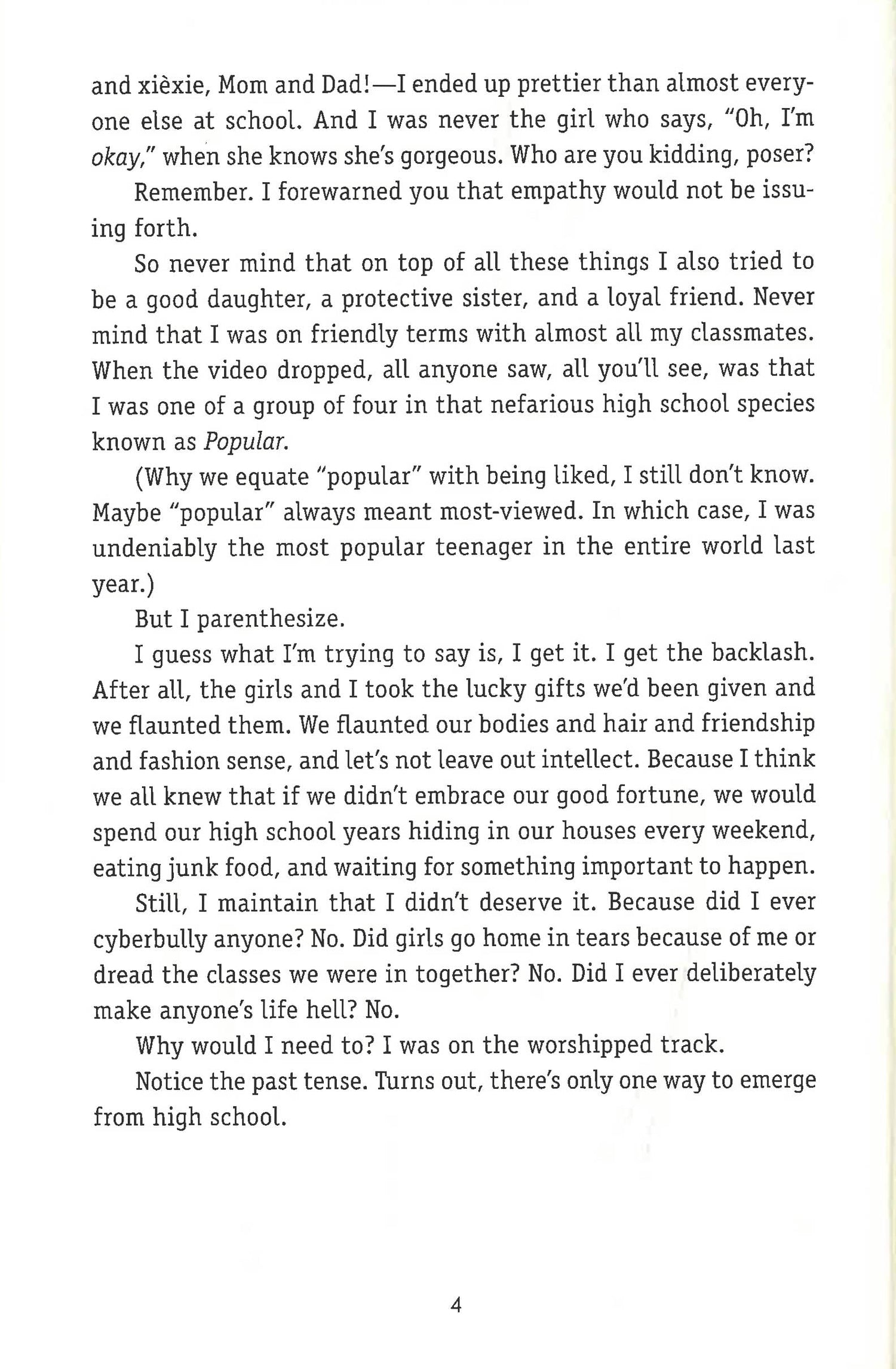 Kyla Cheng doesn't expect you to like her. For the record, she doesn't need you to. On track to be valedictorian, she's president of her community club, a debate team champ, plus the yummy Mackenzie Rodriguez has firmly attached himself to her hip. But a week before college applications are due, a video of Kyla "doing it" with her crush-worthy English teacher is uploaded to her school's website. It instantly goes viral, but here's the thing: it's not Kyla in the video.