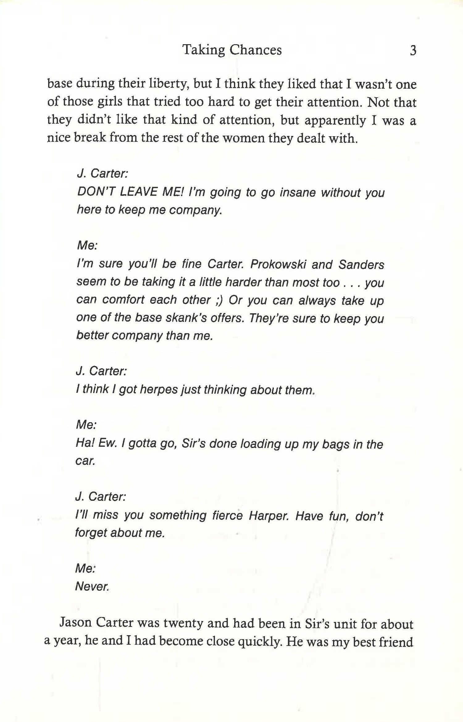 Eighteen year old Harper has grown up under her career-Marine father’s thumb. Ready to live life her own way and experience things she’s only ever heard of from the jarheads in her father’s unit, she’s on her way to college at San Diego State University.