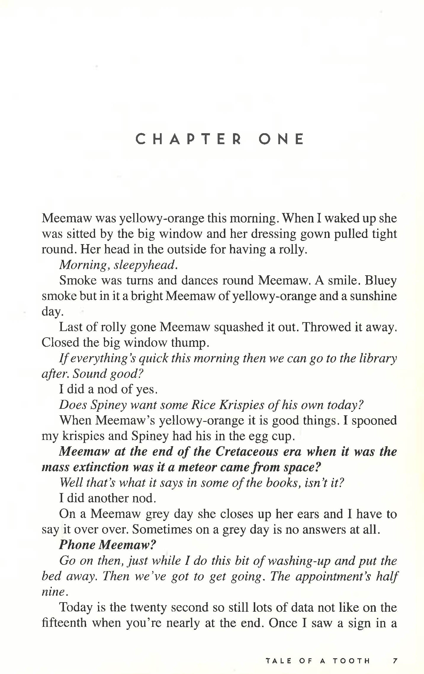 'Allie Rogers strikes gold again A book about issues that isn't issue-led, and a book about childhood that isn't mawkish and emotional - Allie Rogers has, in Tale of a Tooth, created a tale that's original, powerful and long lasting. Danny's voice is readable, memorable, and may have just changed my mind about child narrators' The Book Bag