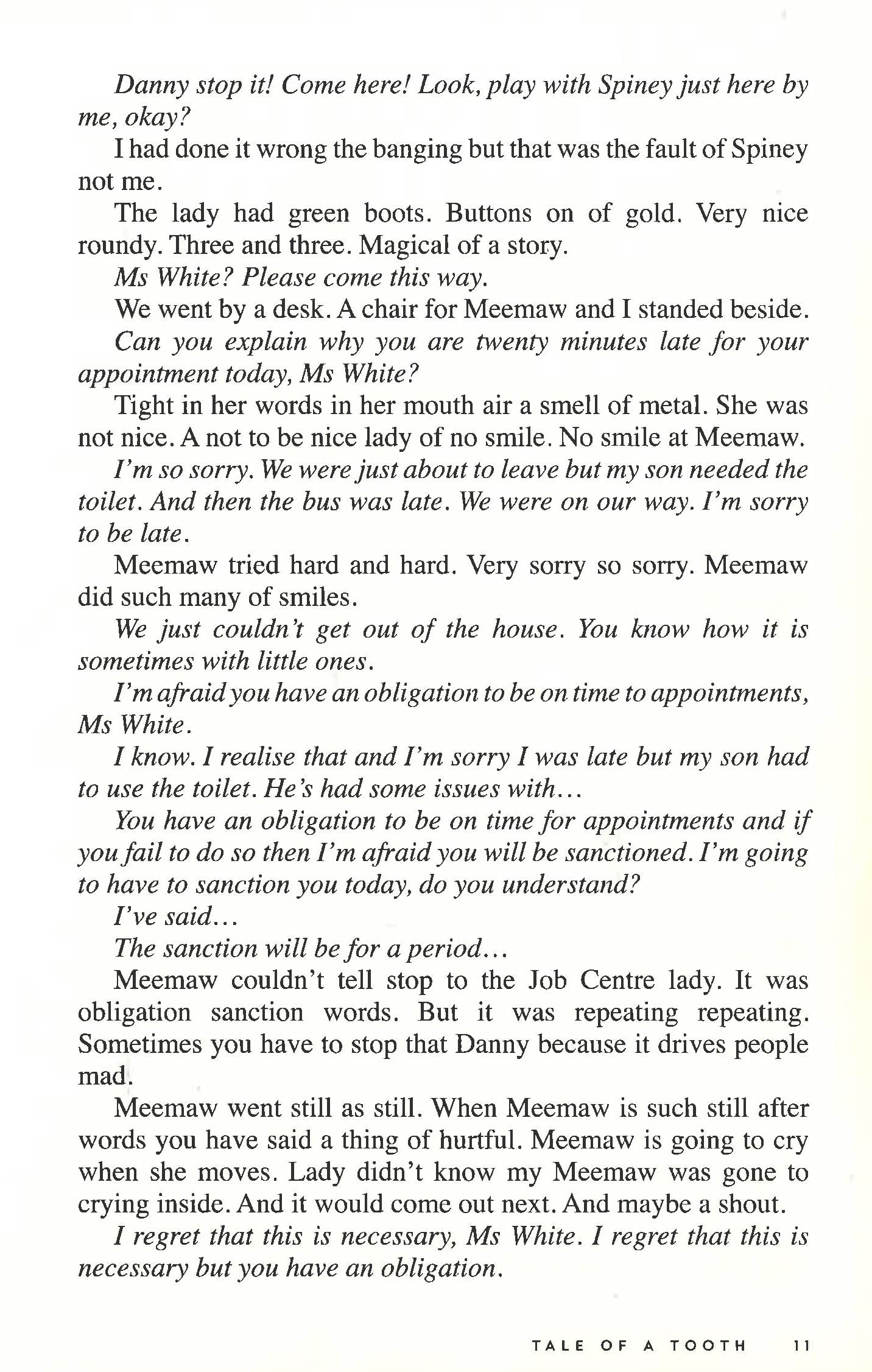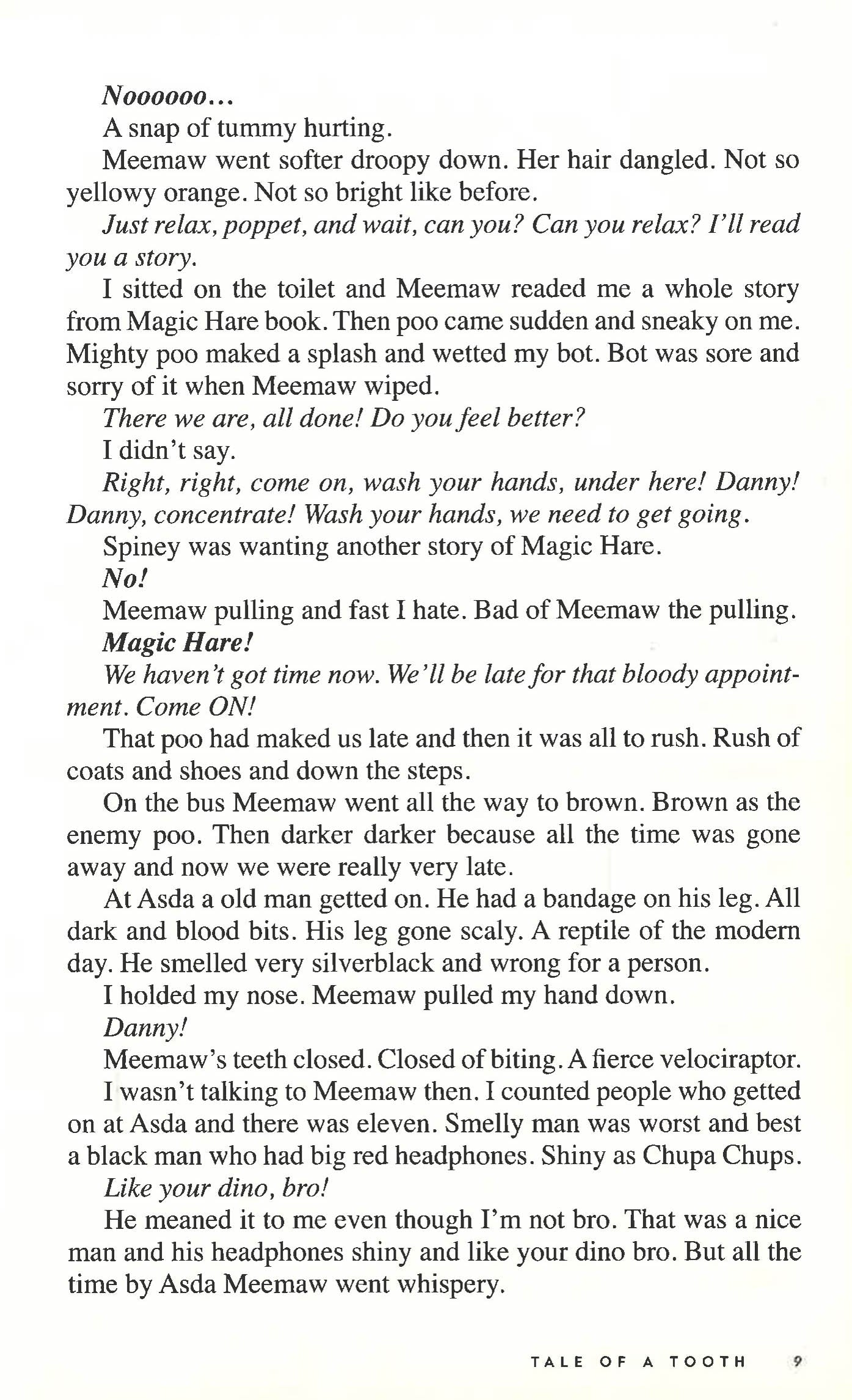 Told in the voice of an intelligent, passionate and unusual child, Tale of a Tooth is an immersive and compelling look at the impact of domestic abuse on a vulnerable family unit.