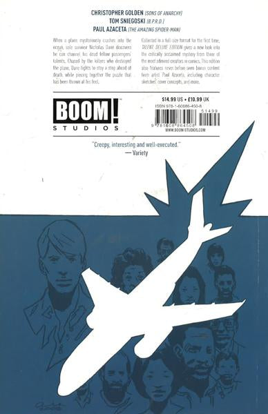 When a plane mysteriously crashes, sole survivor Nicholas Dane discovers he can channel his fellow dead passengers' talents. Chased by the killers who destroyed the plane, Dane fights to stay a step ahead of death, while piecing together the puzzle pieces of his life. For our next full-size reprint of classic titles we decided to spotlight an early series from modern master artist Paul Azaceta (THE AMAZING SPIDER-MAN), written by Christopher Golden (SONS OF ANARCHY) and Tom Sniegoski (B.P.R.D.). For the first time ever, Azaceta's realization of Golden and Sniegoski supernatural thriller can be seen in full-size glory. All the explosions, chases, and mayhem are now seen they way they were always meant to be.