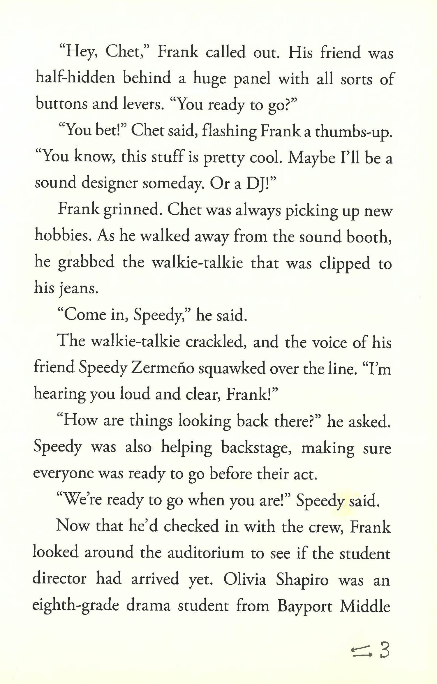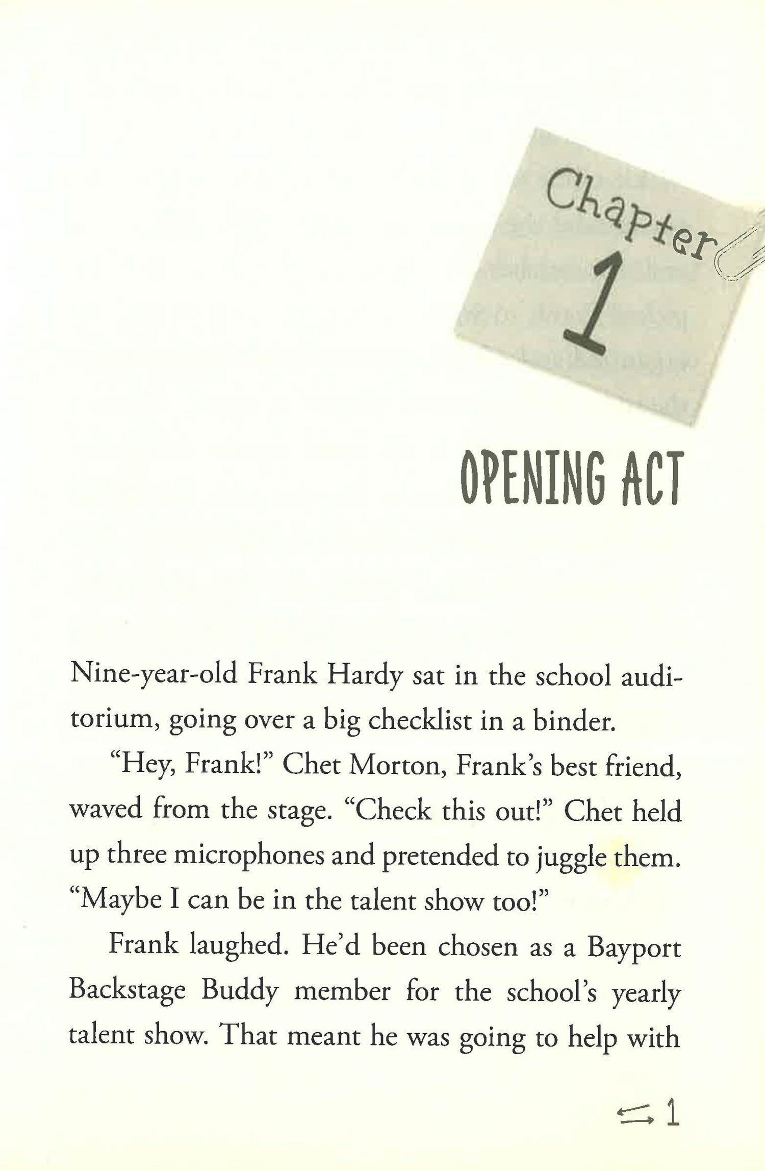 Detective brothers Frank and Joe must figure out who is sabotaging their school talent show in the fourth book in an all-new, interactive Hardy Boys chapter book mystery series. Frank and Joe Hardy are excited to compete in the annual Bayport Elementary Talent Show. Frank is going to work behind the scenes, and Joe wants to show off his sweet juggling skills. But during the first rehearsal, strange things start to happen - their friend’s trumpet is filled with bubbles, someone’s backing track is switched to croaking frogs, and a strategically placed batch of hair dye gives one of their classmates a bad hair day to remember. Can Frank and Joe figure out how to stop the pranks before the curtain falls early on the show?
