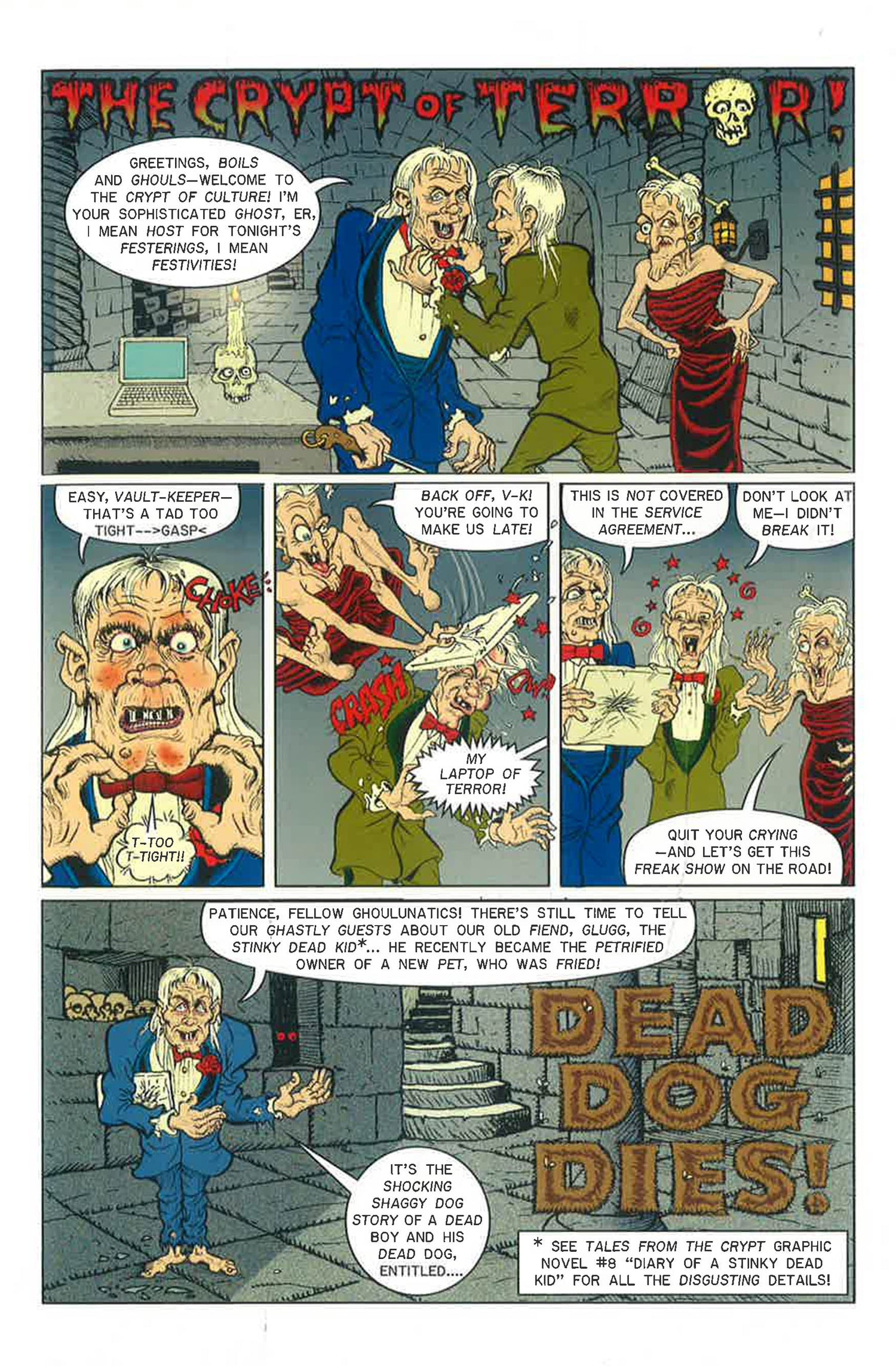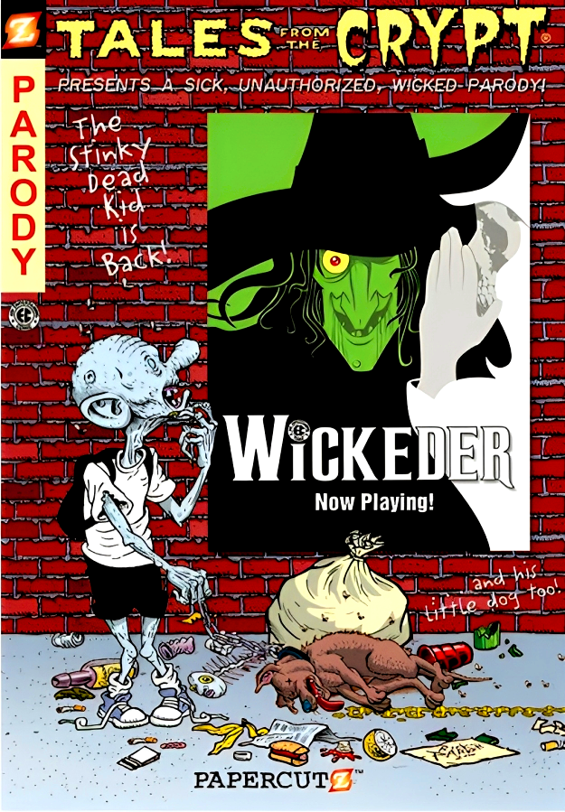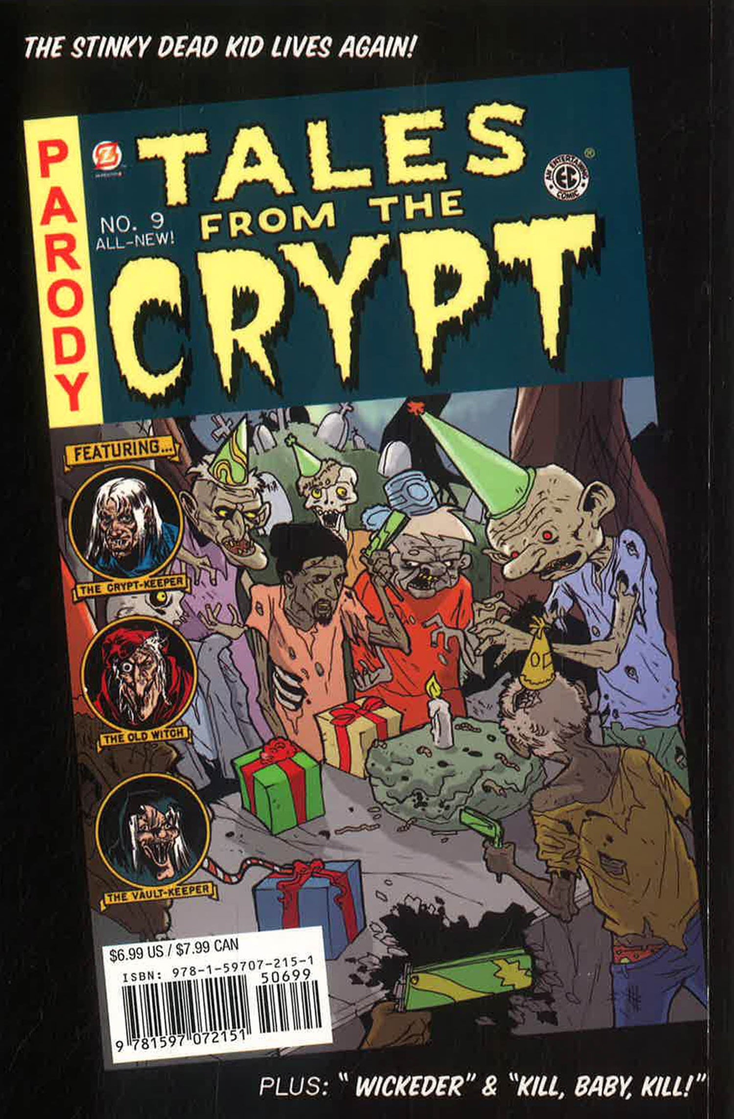 Mr. Exes Tales from the Crypt is bigger and "wickeder" than ever! After the surprise-success of Tales from the Crypt #8 "Diary of a Stinky Dead Kid," Crypt is back and offering an all-new parody of the best-selling "Wicked" book. Plus, the Stinky Dead Kid himself is back in a new story, and Star Trek writer David Gerrold contributes "Sales of a Death Man."
