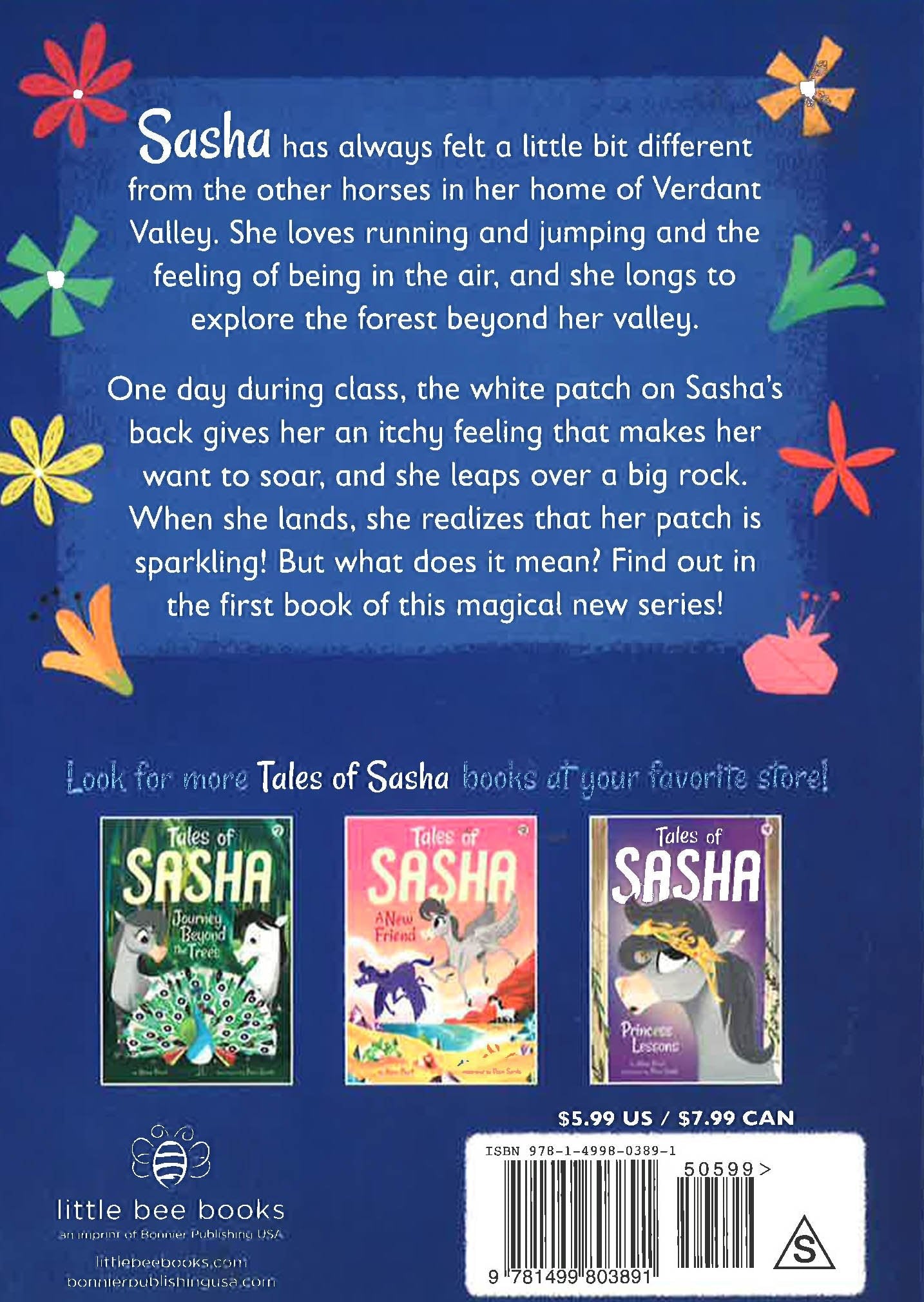 Sasha has always felt a little bit different from the other horses in her home of Verdant Valley. She loves running and jumping and the feeling of being in the air, and she longs to explore the forest beyond her valley.One day during class, the white patch on Sasha's back gives her an itchy feeling that makes her want to soar, and she leaps over a big rock. When she lands, she realizes that her patch is sparkling. But what does it mean?