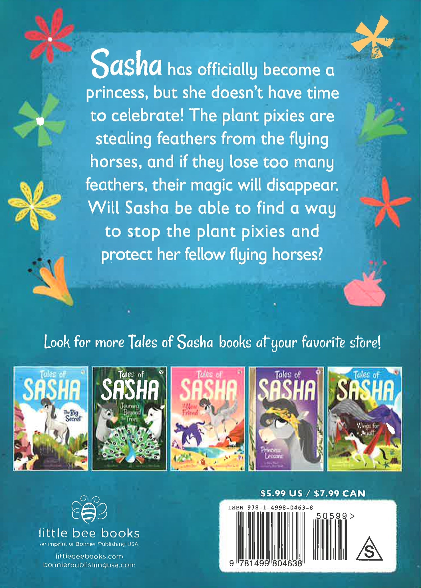 Sasha has officially become a princess, but she doesn't have time to celebrate! The plant pixies are stealing feathers from the flying horses, and if they lose too many feathers, all of their magic will disappear. Will Sasha be able to find a way to stop the plant pixies and protect her fellow flying horses?