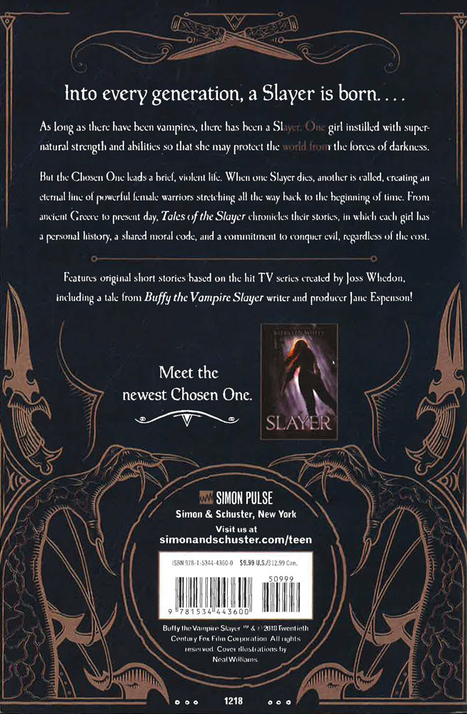 But the Chosen One leads a brief, violent life. When one Slayer dies another is called, creating an eternal line of powerful female warriors stretching all the way back to the beginning of time. From ancient Greece to present day, Tales of the Slayer chronicles their stories in which each girl has a personal history, a shared moral code, and a commitment to conquer evil, regardless of the cost…