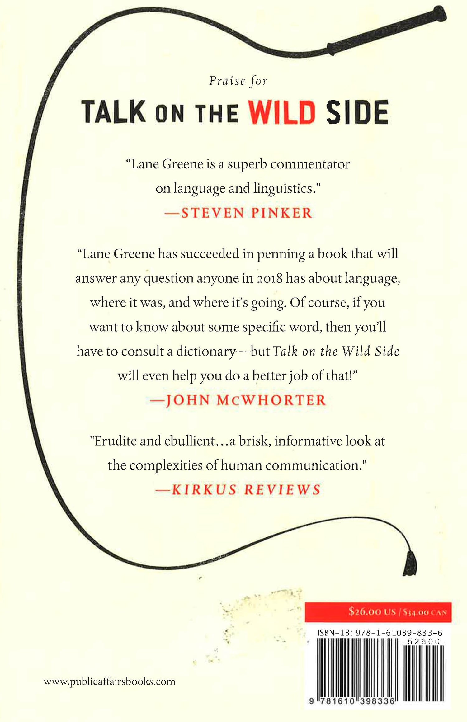 Language is the most human invention. Spontaneous, unruly, passionate, and erratic it resists every attempt to discipline or regularize it--a history celebrated here in all its irreverent glory. Language is a wild thing. It is vague and anarchic. Style, meaning, and usage are continually on the move. Throughout history, for every mutation, idiosyncrasy, and ubiquitous mistake, there have been countervailing rules, pronouncements and systems making some attempt to bring language to heel. From the utopian language-builder to the stereotypical grammatical stickler to the programmer trying to teach a computer to translate, Lane Greene takes the reader through a multi-disciplinary survey of the many different ways in which we attempt to control language, exploring the philosophies, motivations, and complications of each. The result is a highly readable caper that covers history, linguistics, politics, and grammar with the ease and humor of a dinner party anecdote. Talk on the Wild Side is both a guide to the great debates and controversies of usage, and a love letter to language itself. Holding it together is Greene's infectious enthusiasm for his subject. While you can walk away with the finer points of who says "whom" and the strange history of "buxom" schoolboys, most of all, it inspires awe in language itself: for its elegance, resourcefulness, and power.