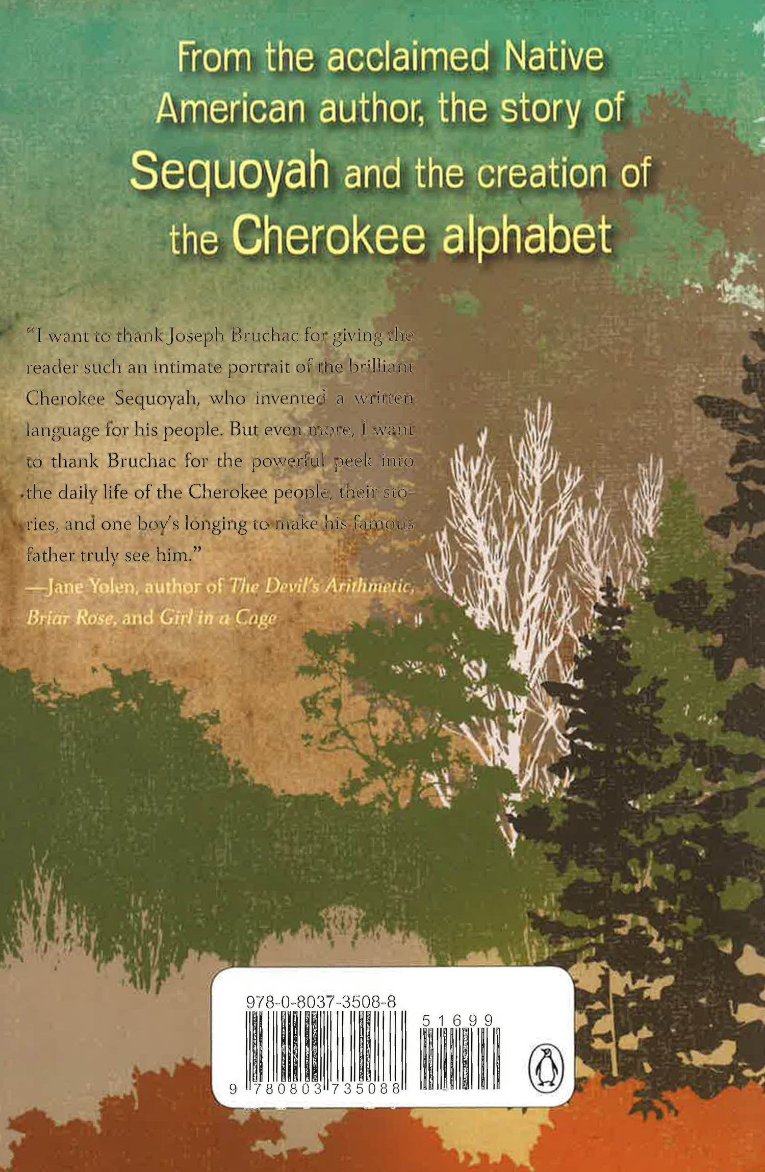 A new work of historical fiction about Sequoyah and the creation of the Cherokee alphabet, from the acclaimed author of Code Talker Thirteen-year-old Uwohali has not seen his father, Sequoyah, for many years. So when Sequoyah returns to the village, Uwohali is eager to reconnect. But Sequoyah's new obsession with making strange markings causes friends and neighbors in their tribe to wonder whether he is crazy, or worse--practicing witchcraft. What they don't know, and what Uwohali discovers, is that Sequoyah is a genius and his strange markings are actually an alphabet representing the sounds of the Cherokee language.