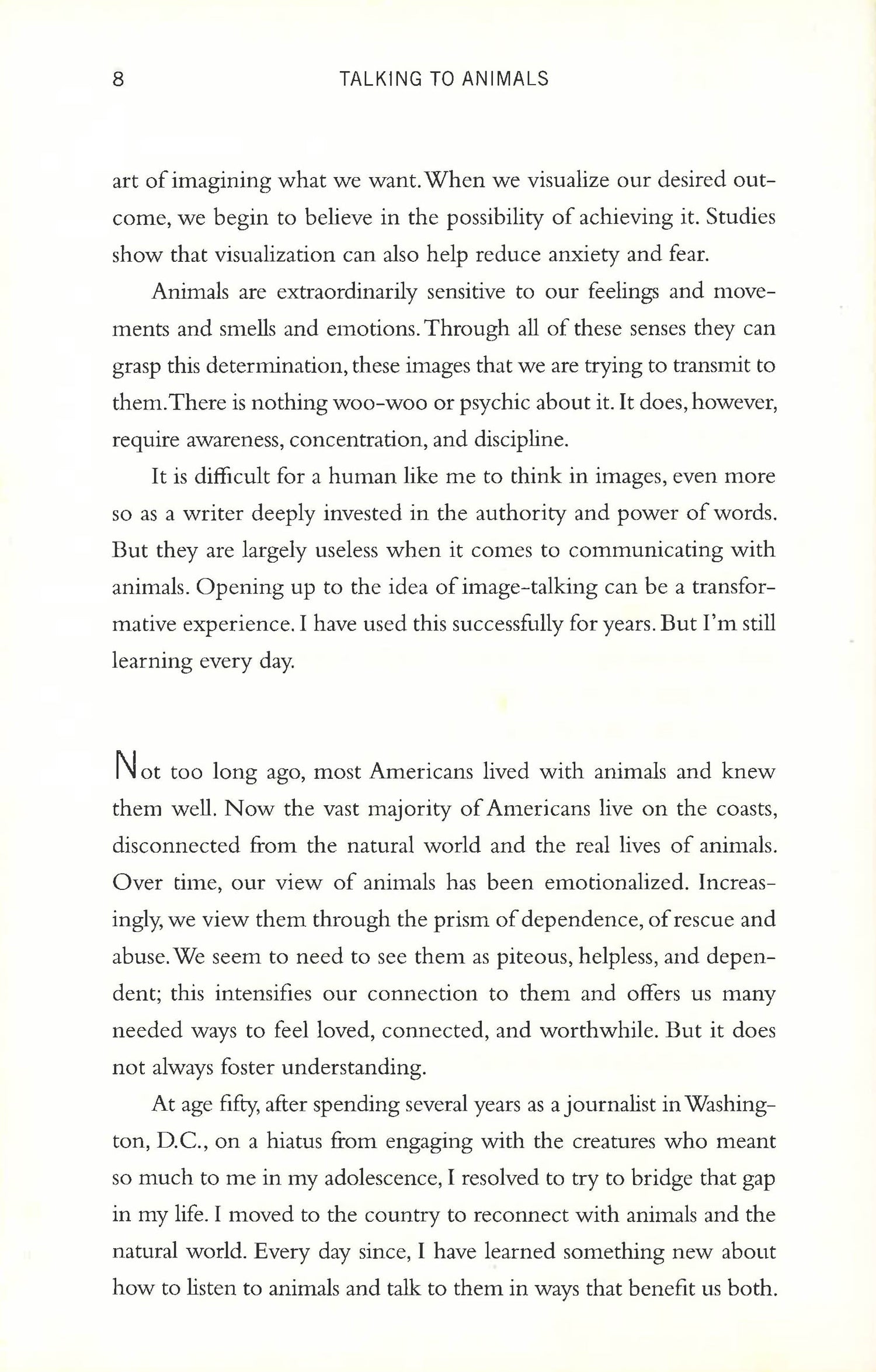 New York Times bestselling author Jon Katz offers us a deeper understanding of the inner and outer lives of animals and teaches us how we can more effectively communicate with them, made real by his own remarkable research and experiences with a wide array of creatures great and small. In Talking to Animals, New York Times bestselling author Jon Katz, who left his Manhattan life behind two decades ago for life on a farm where he is surrounded by dogs, cats, sheep, horses, cows, goats, and chickens. Devoting each chapter to an animal from his life, Katz tells funny and illuminating stories about his profound experiences with them, showing us how healthy engagement with animals falls into five key areas: Food, Movement, Visualization, Language, and Instincts. We meet Red the dog who started out antisocial and untrained and is now a therapy dog working with veterans from Iraq and Afghanistan. And we meet Winston, the dignified and brave rooster who was injured defending his hens from a hawk and who has better interpersonal skills than most humans. Thoughtful and intelligent, lively and powerful, this book will completely change the way you think about and interact with animals.