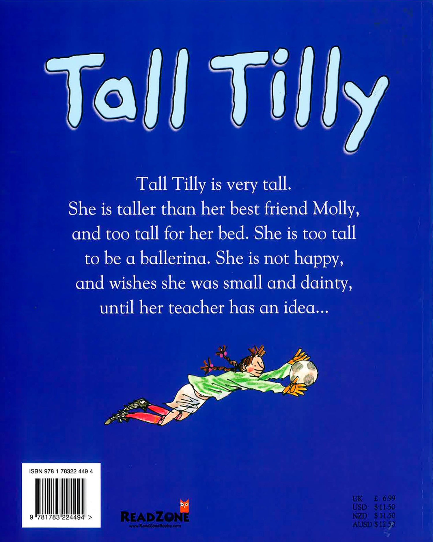 WillTall Tilly'steacher be able to show her that being tall isn't all bad?Tall Tilly is very tall. She is taller than her best friend Molly, and too tall for her bed. She is too tall to be a ballerina. She is not happy and wishes she was small and dainty, until her teacher has an idea . . .