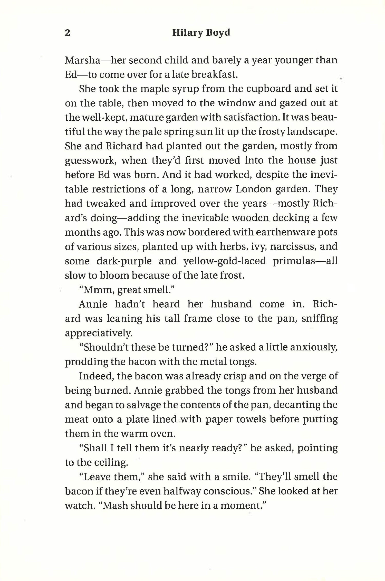 From the bestselling author of "Thursdays in the Park "comes a tense, emotional drama about what happens to a family when a secret is kept hidden, and a stranger is suddenly introduced into the dynamic. Annie Delancey is happily married, in her early 50s, with three grown children. But Annie guards a secret. At age nineteen she had a baby boy and gave him up for adoption. She still thinks of him every day. One day she receives a letter from Kent Social Services; her son Daniel wants to make contact. A part of her is overjoyed--she longs to meet him. But another part fears what this revelation will do to her family, none of whom know about her past.When Daniel is introduced to Annie's family, a few small tears in the family fabric suddenly gape wide, and the impact of is greater than she could have ever imagined.