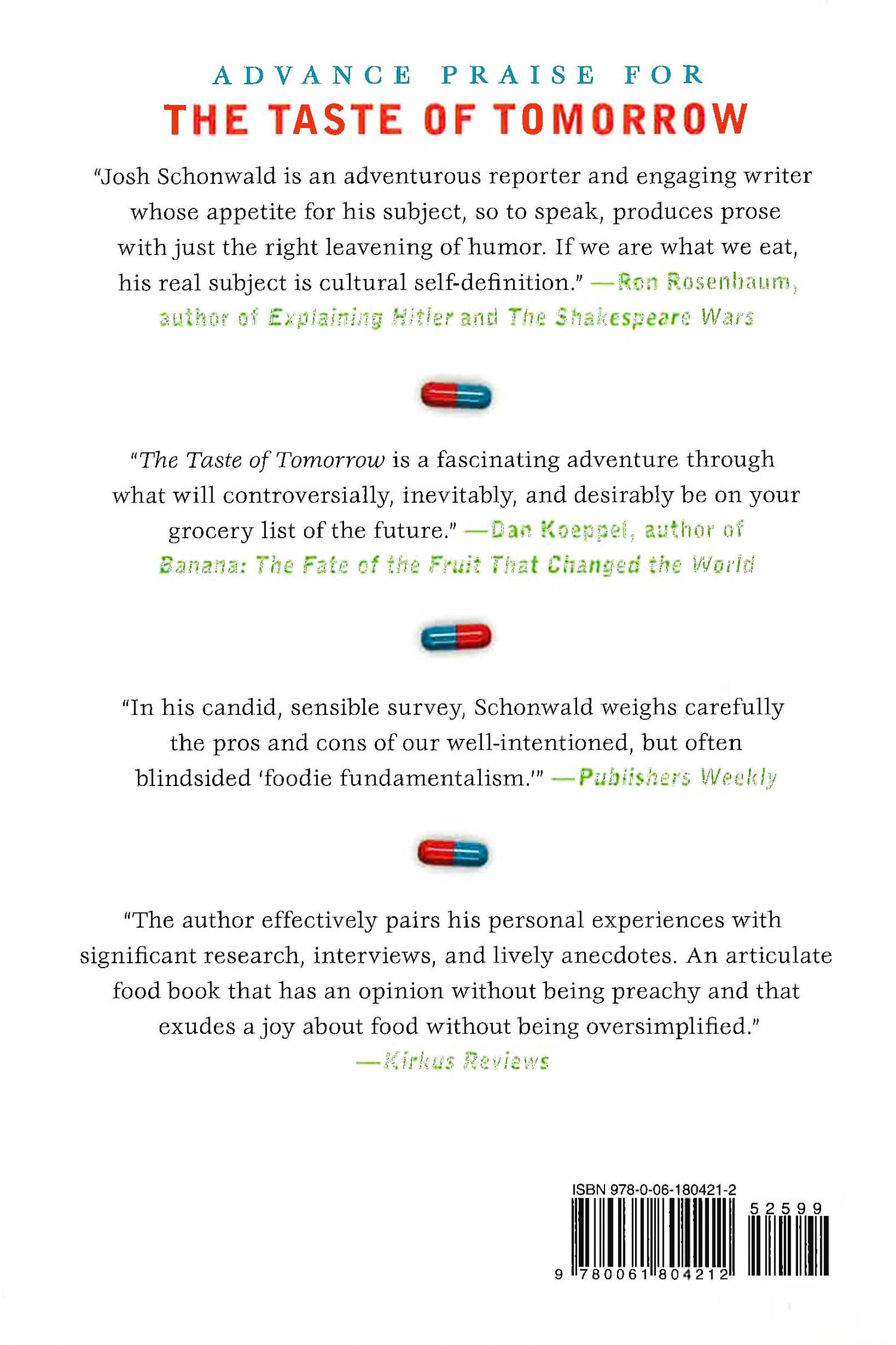 A fascinating look at the people, trends, and technologies transforming the food of today and tomorrow In The Taste of Tomorrow, journalist Josh Schonwald sets out on a journey to investigate the future of food. His quest takes him across the country and into farms and labs around the globe. From Alice Waters' microfarm to a Pentagon facility that has quietly shaped American supermarkets,The Taste of Tomorrow is a rare, behind-the-scenes glimpse at what we eat today - and what we'll be eating tomorrow. Schonwald introduces us to a motley group of mad scientists, entrepreneurs, renegade farmers, and food engineers who are revolutionizing the food we eat. We meet the Harvard-trained pediatrician who wants to change the way humans raise fish; a New York chef who believes he's found the next great ethnic cuisine; a lawyer-turned-nanotechnologist who believes he can solve human nutritional needs without using food. In this lively and fascinating book, Schonwald explains how new foods happen; why some foods explode on the scene virtually overnight while others take decades - and countless failures - to catch on. And he doesn't shy away from controversy. Although the book begins as a simple search for "the salad, meat, seafood, and pad Thai of the future," Schonwald becomes increasingly focused on finding environmentally friendly foods of the future. Ultimately, he comes to believe that emerging scientific breakthroughs'genetic engineering, nanotechnology, food processing'are essential to feeding the globe's expanding (and hungry) population.