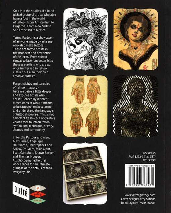 Tattoo Parlour is a showcase of artworks made by artisans who also make tattoos. These are tattoo artists in the broadest and best sense of the term. From skin to canvas to laser cut dollar bills these are artists who are at once immersed in tattoo culture but also their own creative practice. Forget cliches and parodies of tattoo imagery - Tattoo Parlour delves a little deeper and explore artists who are influenced by different dimensions of what it means to be tattooed, make a tattoo and understand the language of tattoo discourse.