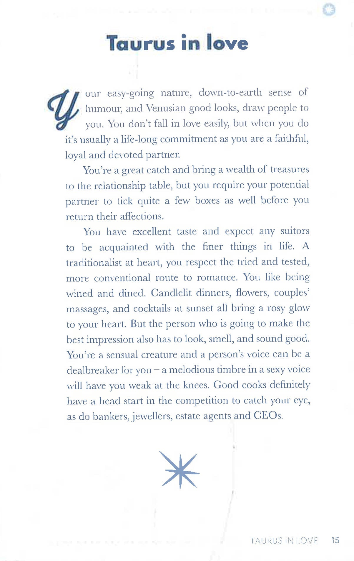 Patience is your superpower, Taurus. While others may be frustrated by your stubbornness, your quiet determination will help you create a life that's tangible, beautiful and enduring.Discover what the stars reveal about you, your personality, your gifts and challenges in beautiful hardback guide. Bestselling, highly regarded astrologers, Marion Williamson and Pam Carruthers, explain what your Sun and Moon signs say about you, as well as who you get along with in relationships and at work.Love and relationshipsTravel and favorite placesColleague compatibility and work ethicBirthday breakdownUnderstanding your whole birthchartPresented in a beautiful gift edition with silver-embossing and gilded page-edges , this guide will reveal what you should be doing to live at your highest potential. With insight into what your day of birth means for your personality as well as ideas to meditate on to bring further spiritual development, this is your one-stop guide to all things Taurus.ABOUT THE Arcturus Astrology Library brings together beautiful, silver embossed hardback editions which allows readers to deep dive into what their Sun sign and birthchart says about them. Including sections on personality insights, love compatibilities, best career and travel choices, moon signs, as well as analysis for exact dates of birth and the meanings of other planets in a birthchart, this is a far-ranging look at what the stars mean for us on Earth.