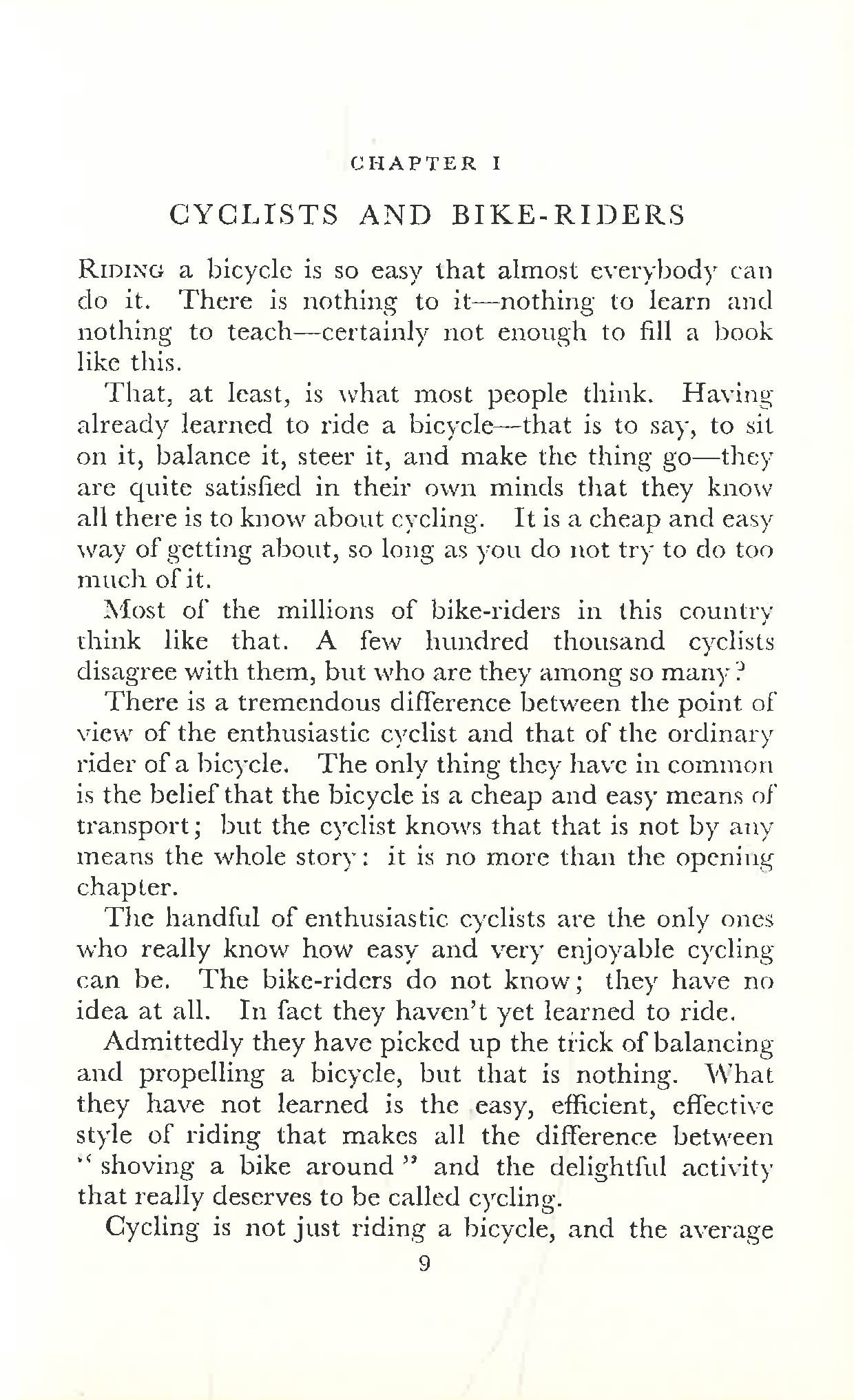 Yet few vehicles have changed as little as the bicycle in the 65 years since this book first published. For all that they have become immeasurably lighter and better adapted to a range of terrains, the basic mechanics remain the same - and a deeply recognizable spirit of joy runs through this book, even though the author, Reginald Shaw, feels he needs to reassure his readers that cycling can be "a pleasurable activity as well as a mode of transport".