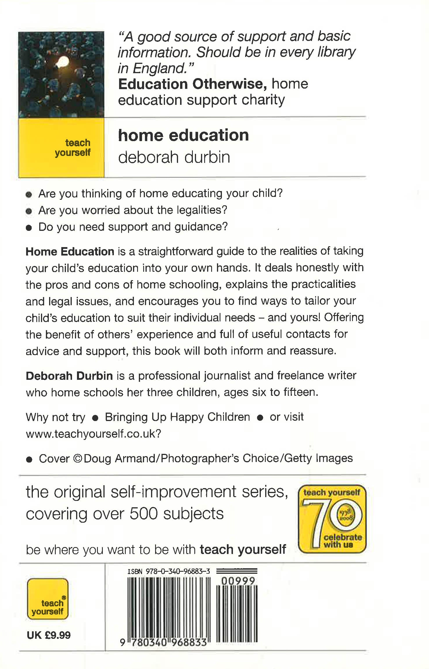 Are you considering home educating your child? Do you have many questions that you need answered? Do you need guidance and support? Teach Yourself Home Education is a comprehensive guide to this very important life choice. Every parent has the right to educate their child at home. This book describes exactly what home education is, how it works, why families opt to do it and answers the many concerns parents have when considering doing it themselves. How do home-educated children make friends? What about exams and qualifications? Do you have to be wealthy? Do you need to be an expert in every subject? Setting out all of the options, this book is an objective guide to home education.