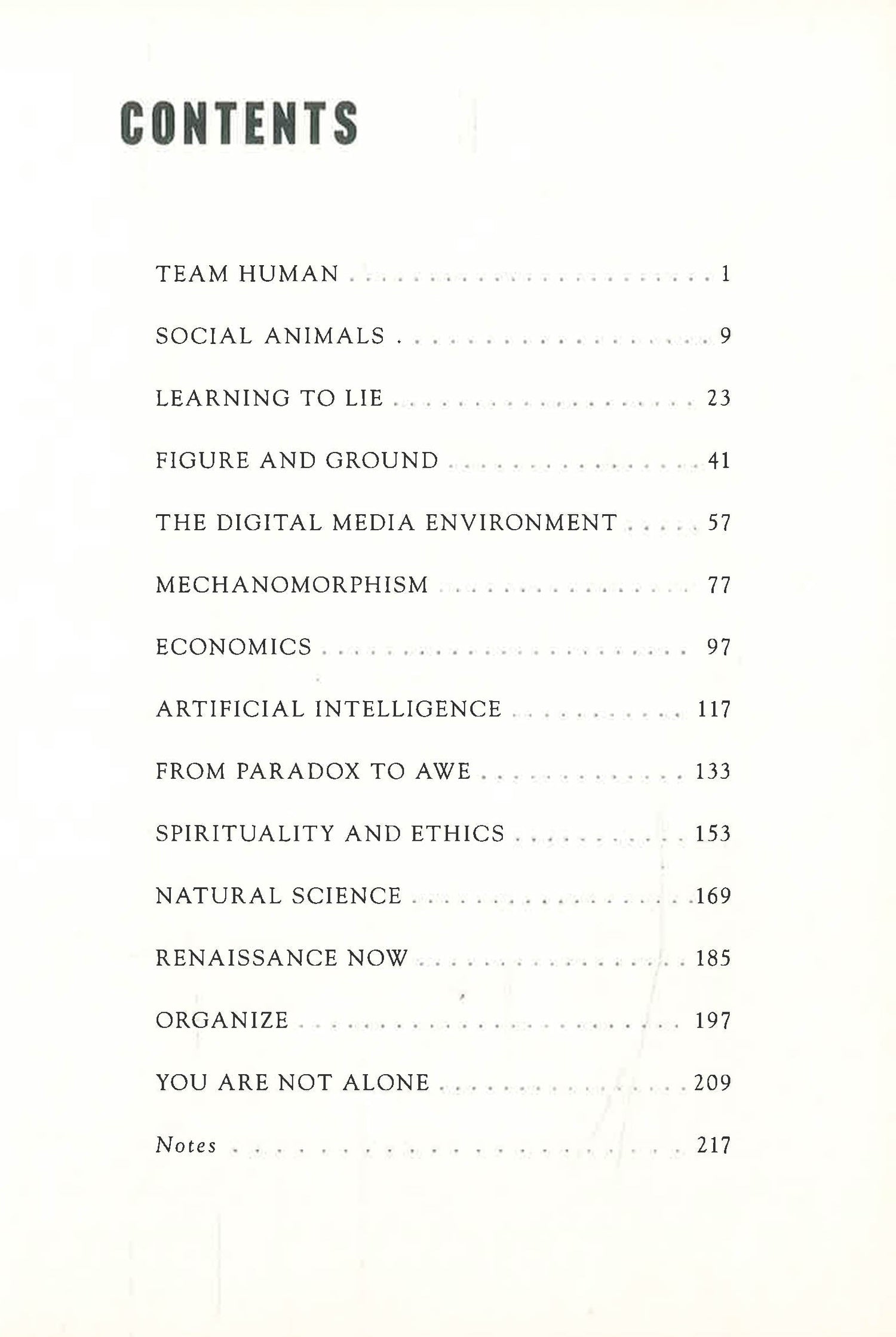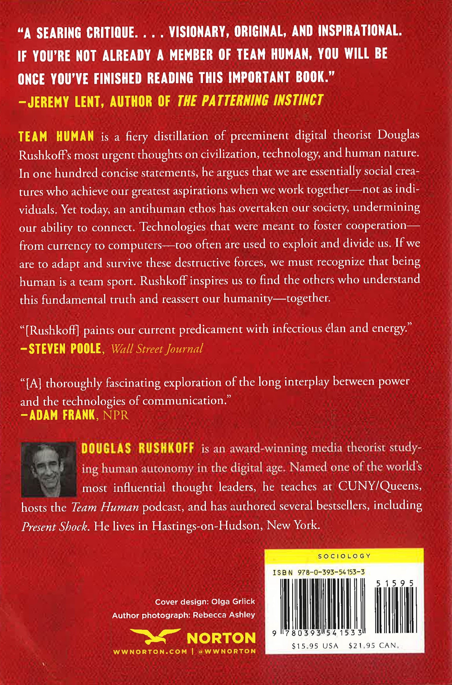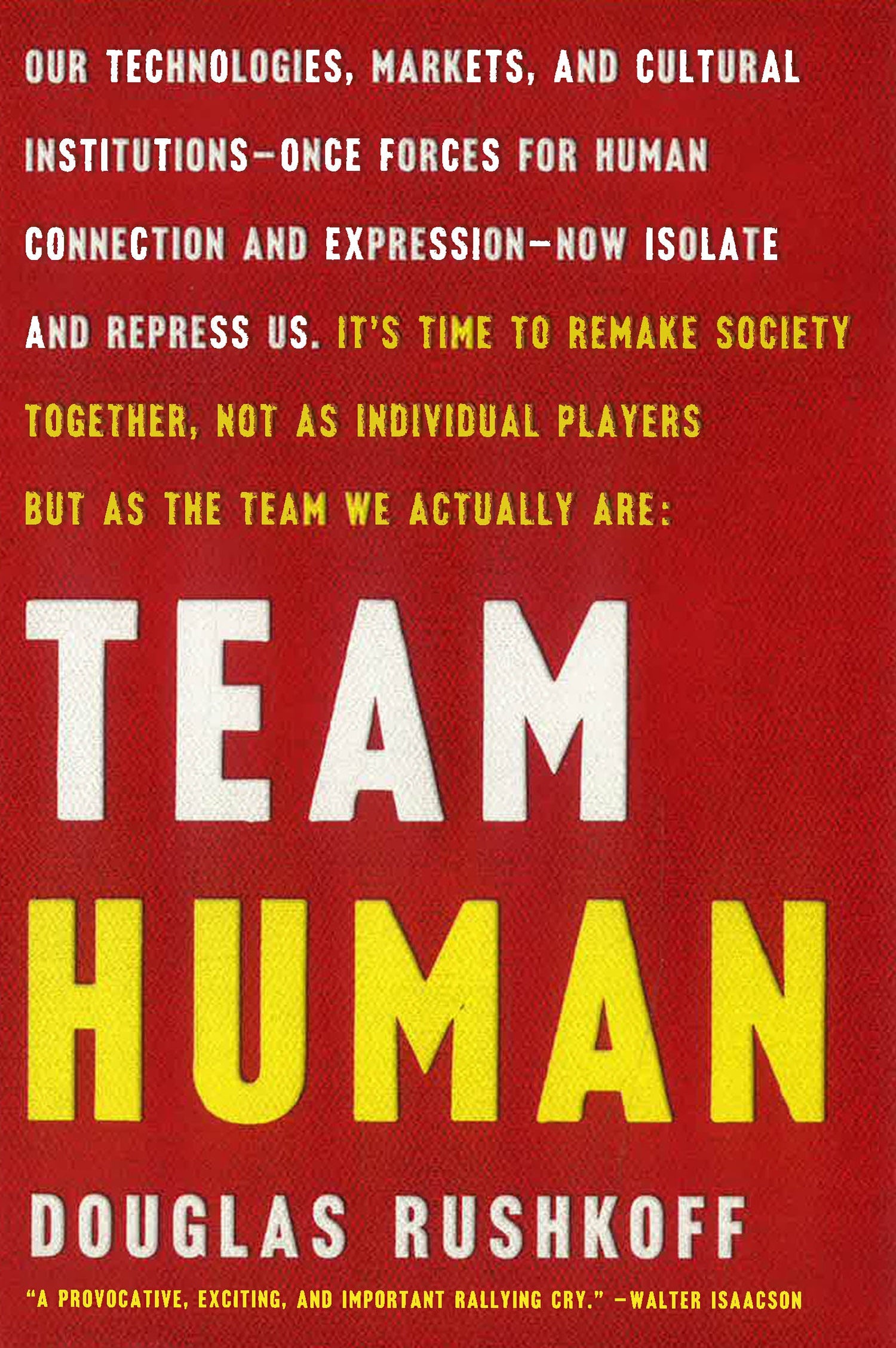 In one hundred lean and incisive statements, Douglas Rushkoff argues that we are essentially social creatures and that we achieve our greatest aspirations when we work together—not as individuals. Yet today society is threatened by a vast antihuman infrastructure that undermines our ability to connect. Money, once a means of exchange, is now a means of exploitation; education, conceived as a way to elevate the working class, has become another assembly line; and the internet has only further divided us into increasingly atomised and radicalised groups. Team Human delivers a call to arms. If we are to resist and survive these destructive forces, we must recognise that being human is a team sport. In Rushkoff’s own words: “Being social may be the whole point”. Harnessing wide-ranging research on human evolution, biology and psychology, Rushkoff shows that when we work together we realise greater happiness, productivity and peace. If we can find others who understand this fundamental truth and reassert our humanity—together—we can make the world a better place to be human.