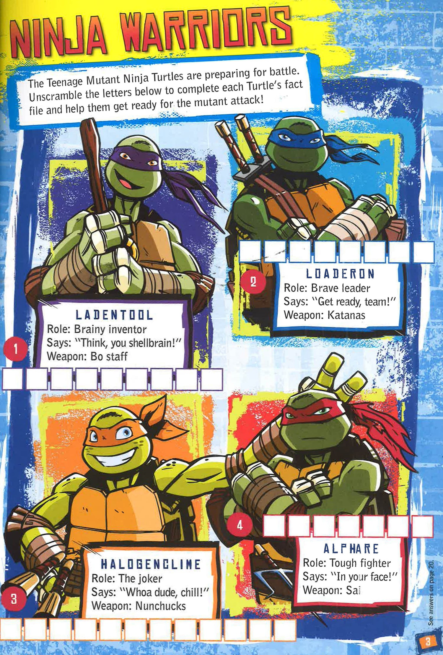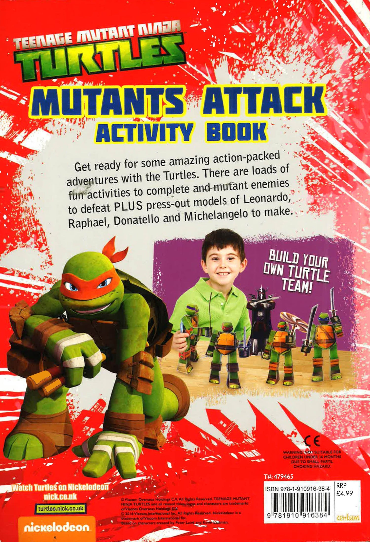 Get ready for some amazing action-packed adventures with the Turtles. There are loads of fun activities to complete and mutant enemies to defeat PLUS press-out models of Leonardo Raphael, Donatello and Michelangelo to make.