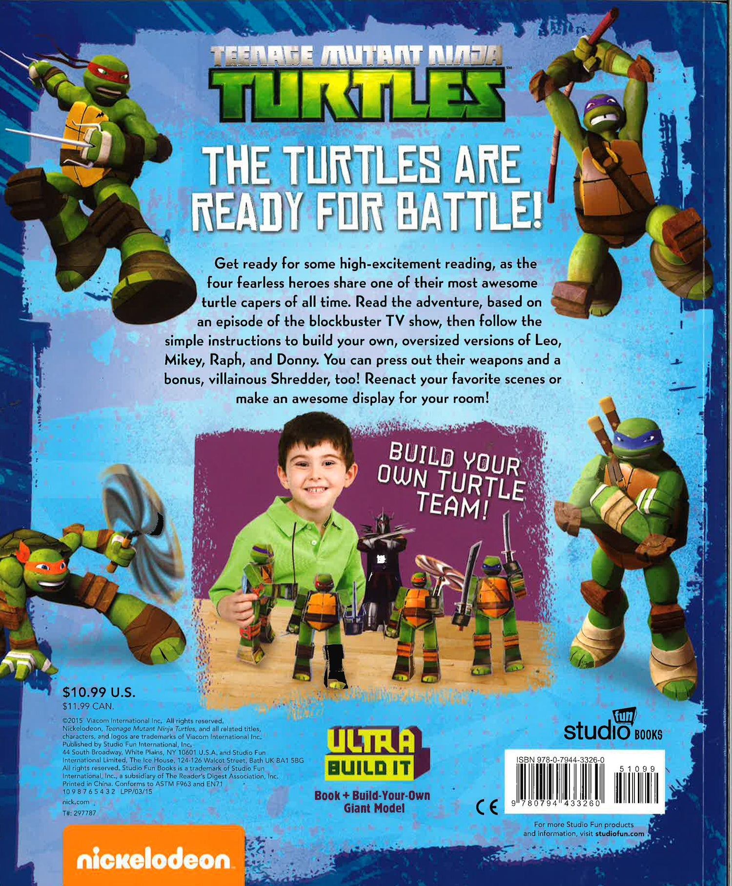 Fans of the Teenage Mutant Ninja Turtles can press out and assemble amazing paper models of all four turtle heroes, and read one of their most awesome adventures. A great activity for kids ages 8 and up, these characters are also fun for younger fans to build with a parent or guardian. Relive the adventures of Mike, Raph, Leo and Donatello in this action-packed storybook that includes press-out pieces to create models of all four turtles!
