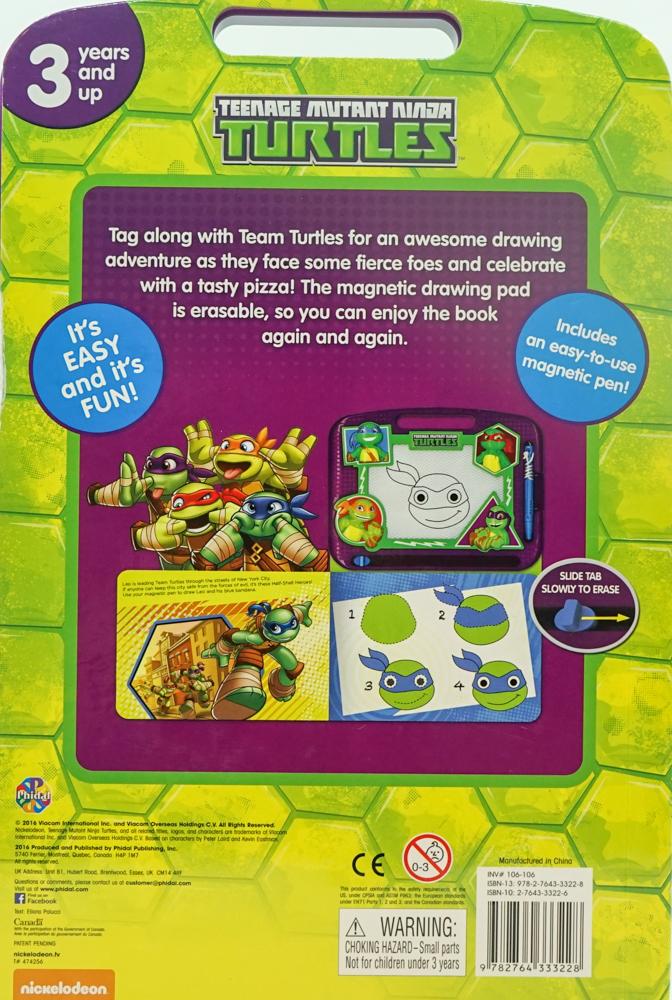 Tag along wit Team Turtles for an awesome drawing adventures as they face some fierce foes and celebrate with a tasty pizza! The magnetic drawing pad is erasable, so you can enjoy the book again and again.