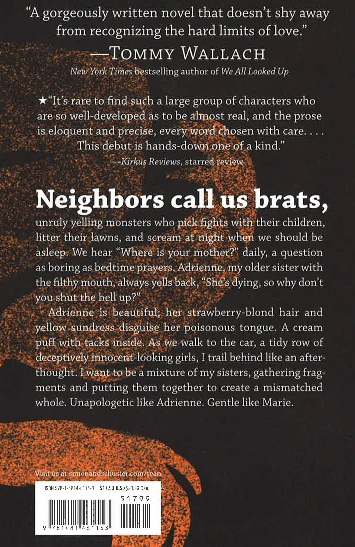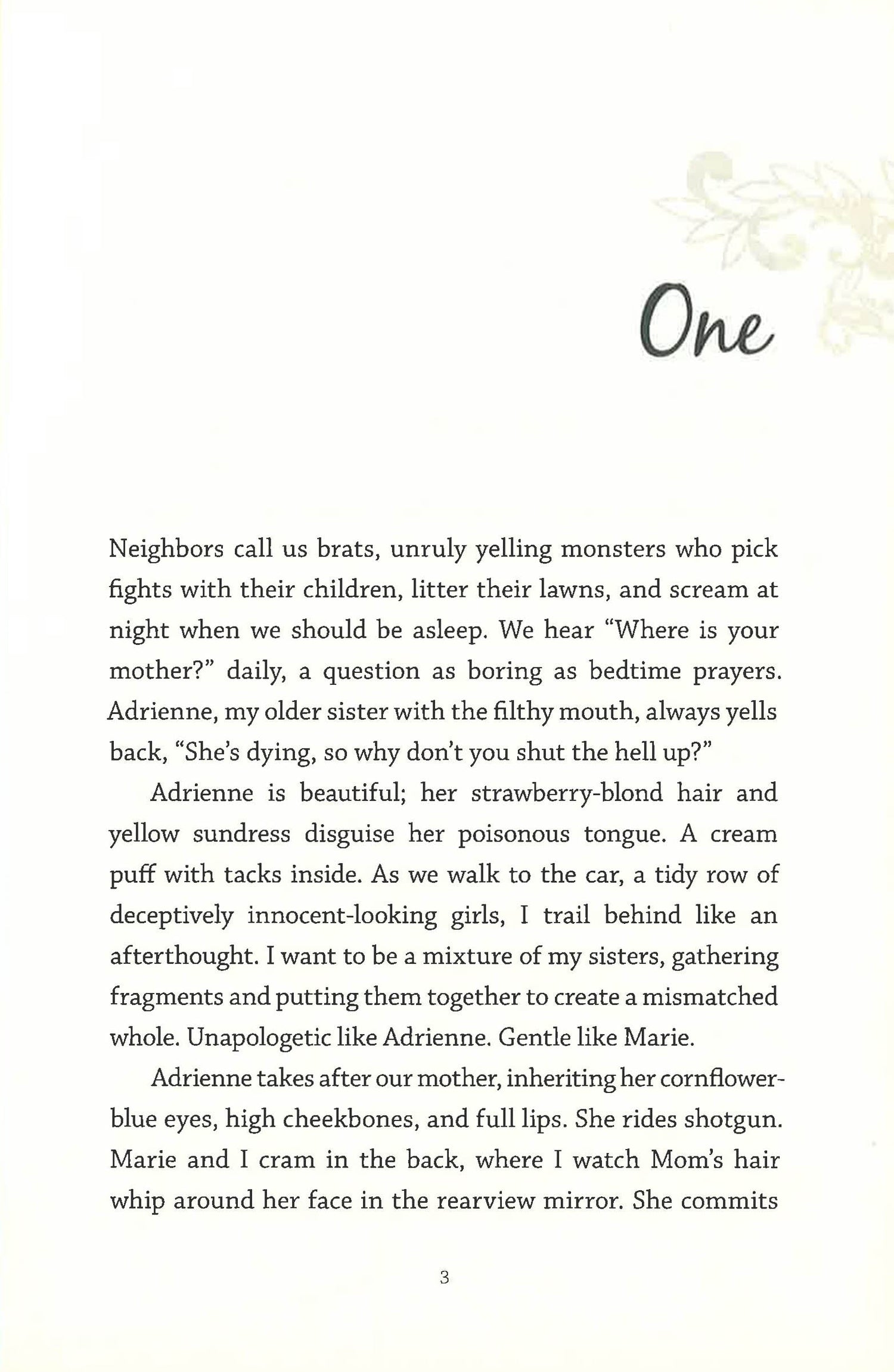 Three sisters struggle with the bonds that hold their family together as they face a darkness settling over their lives in this masterfully written debut novel. There are three beautiful blond Babcock sisters: gorgeous and foul-mouthed Adrienne, observant and shy Vanessa, and the youngest and best-loved, Marie. Their mother is ill with leukemia and the girls spend a lot of time with her at a Mexican clinic across the border from their San Diego home so she can receive alternative treatments. Vanessa is the middle child, a talented pianist who is trying to hold her family together despite the painful loss that they all know is inevitable. As she and her sisters navigate first loves and college dreams, they are completely unaware that an illness far more insidious than cancer poisons their home. Their world is about to shatter under the weight of an incomprehensible betrayal…