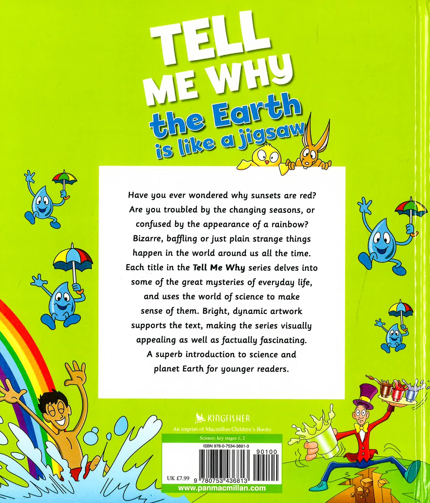 Bizarre, confusing or just plain strange things happen in the world around us all the time. Each title in the Tell Me Why...series delves into some of the great mysteries of everyday life, and uses the world of science and scientific research to make sense of them. Bright, dynamic artwork supports the text, making the series visually appealing as well as factually fascinating. Have you ever wondered why rain falls from the sky? Or why it gets dark at night? And why do some places have four seasons? Tell Me Why The Earth is Like a JIgsaw and Other Questions About Planet Earth provides the answers to these tricky questions about our planet, and many more besides, using lighthearted text and eye-catching artwork to get to the bottom of these scientific problems.