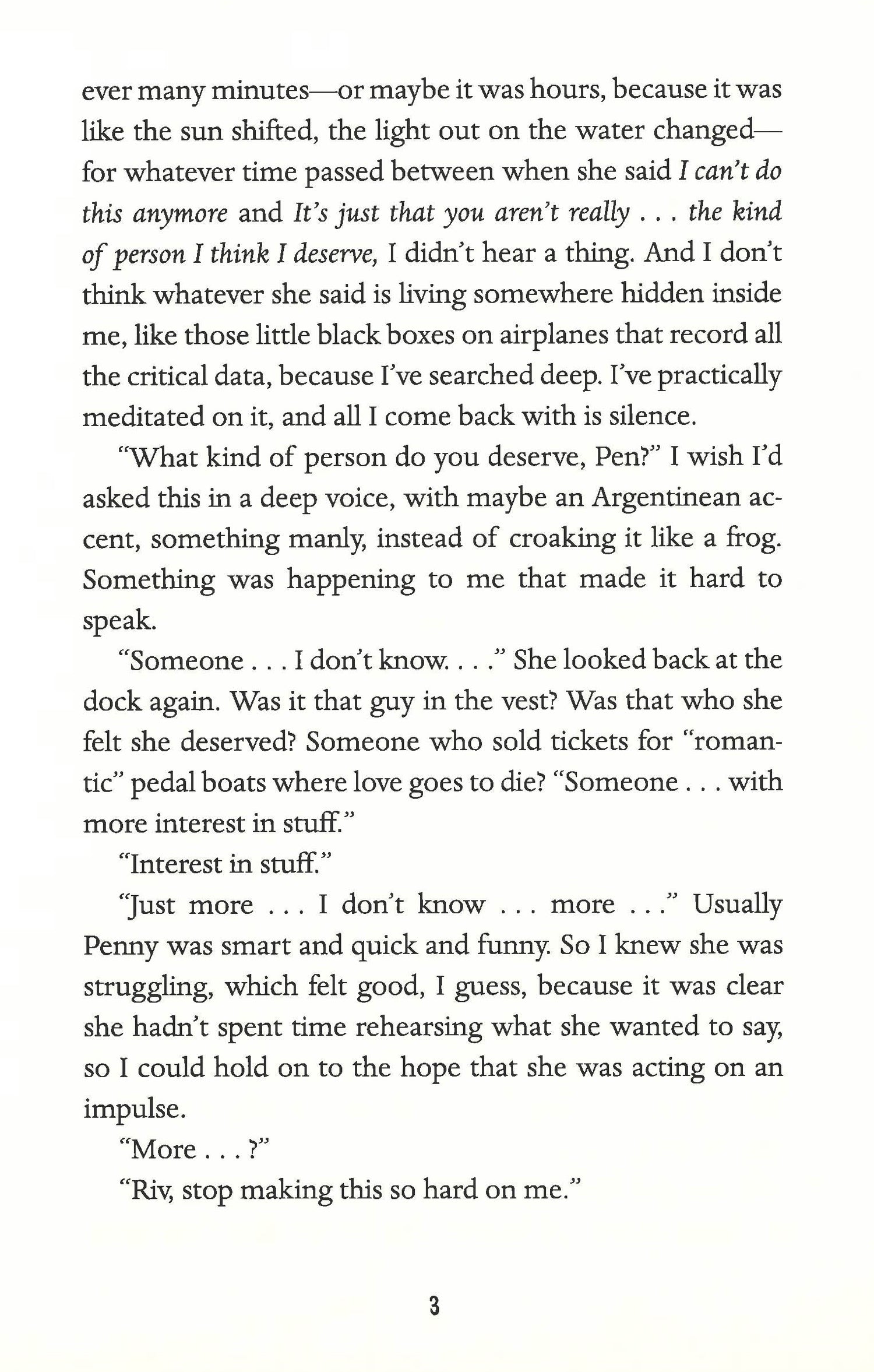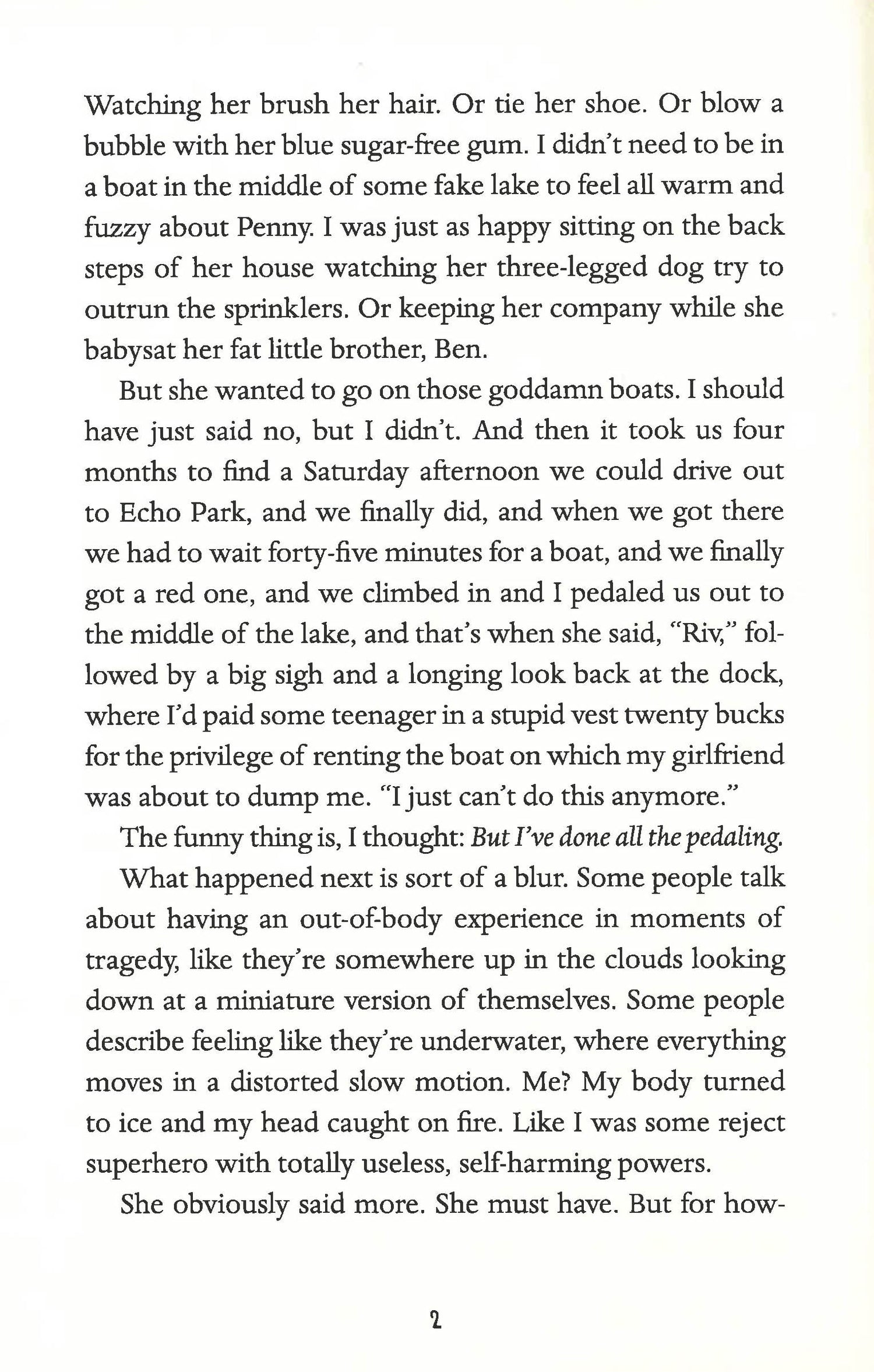 Seventeen-year-old River doesn?t know what to do with himself when Penny, the girl he adores, breaks up with him. He lives in LA, where nobody walks anywhere, and Penny was his ride; he never bothered getting a license. He?s stuck. He?s desperate. Okay . . . he?s got to learn to drive. But first, he does the unthinkable?he starts walking. He stumbles upon a support group for teens with various addictions. He fakes his way into the meetings, and begins to connect with the other kids, especially an amazing girl. River wants to tell the truth, but he can?t stop lying, and his tangle of deception may unravel before he learns how to handle the most potent drug of all: true love. *This book may have remainder mark*