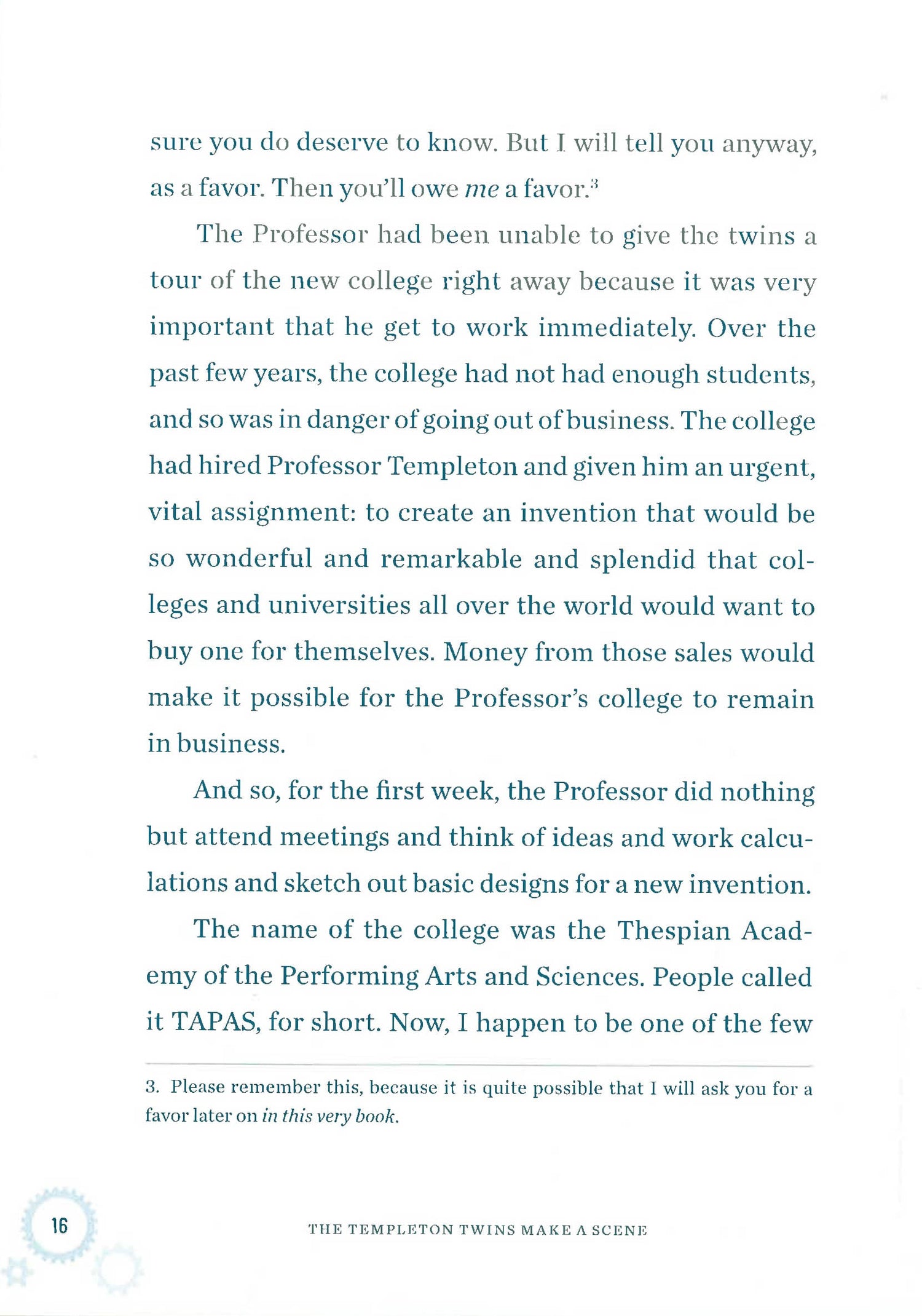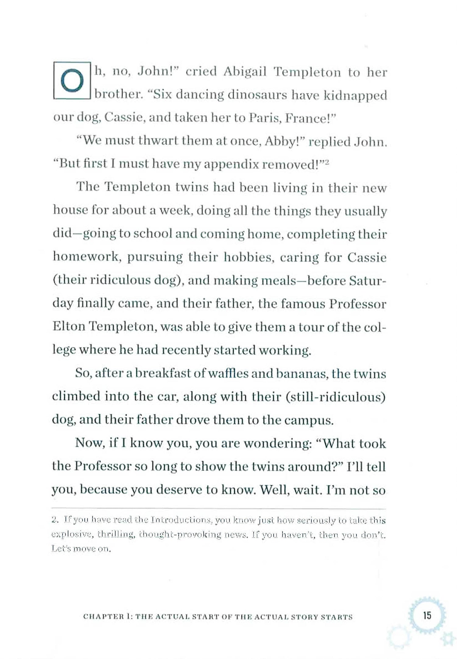 With its kid-perfect humour and dynamic illustrations, Book 1 of the hilarious Templeton Twins series left young readers clamouring for more. And now with Book 2 in paperback, readers will once again revel in drama, silliness and suspense as the twins(and their ridiculous dog) plot to thwart the dastardly Dean brothers in order to save their father's invention as well as their father(and the dog). Oh yes, there is sure to be another recipe. This time for guacamole. Or is it coleslaw?