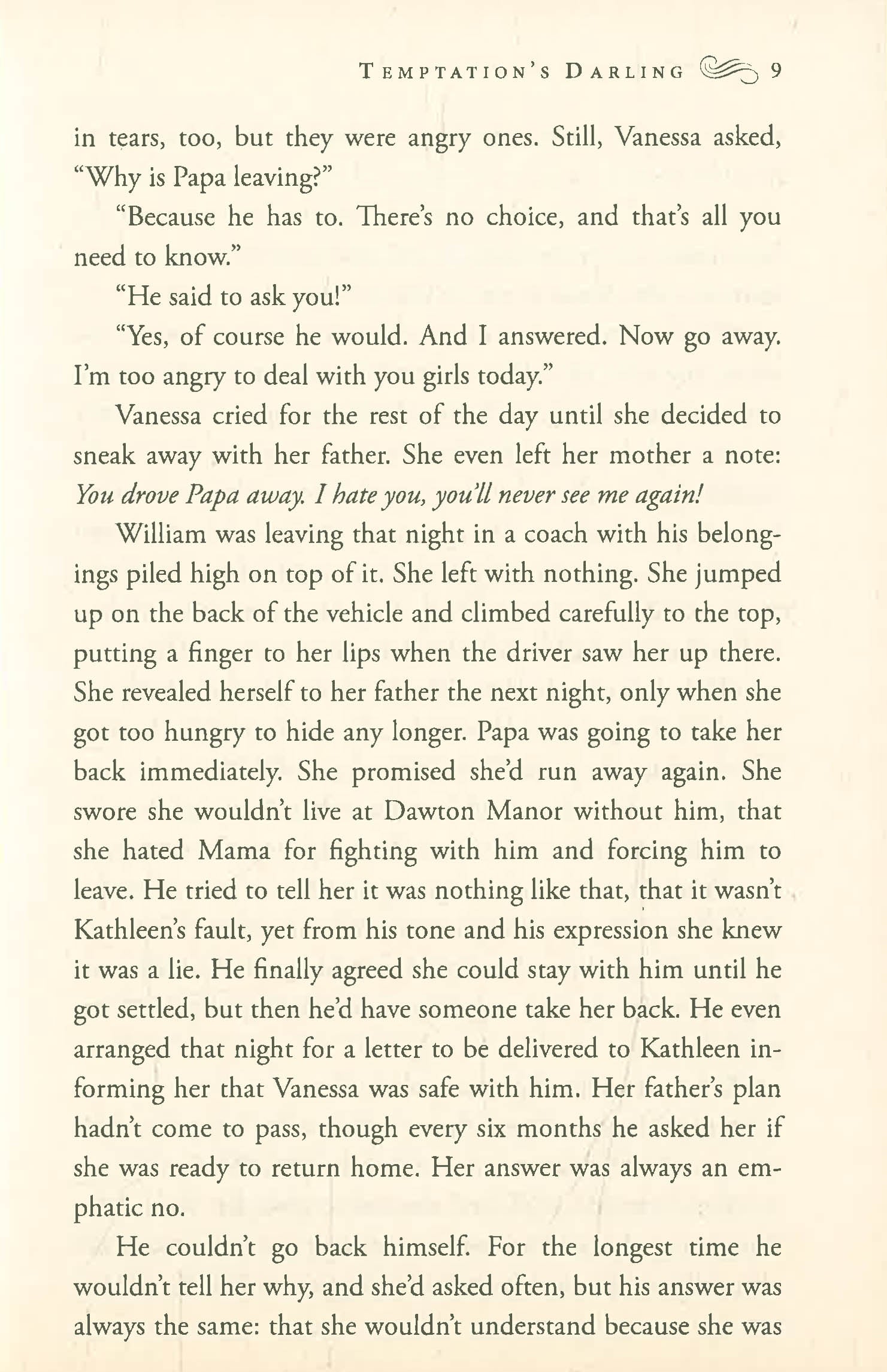 Threatened by powerful enemies, William Blackburn, Earl of Ketterham, lives in exile in the Scottish Highlands with his daughter Vanessa. When she comes of age William urges her to return to her mother in England to make her debut. Raised with all the advantages and freedom a boy would have, Vanessa doubts she can fit the mould of a proper young lady. Still, she agrees, determined to end the vendetta against her father.
