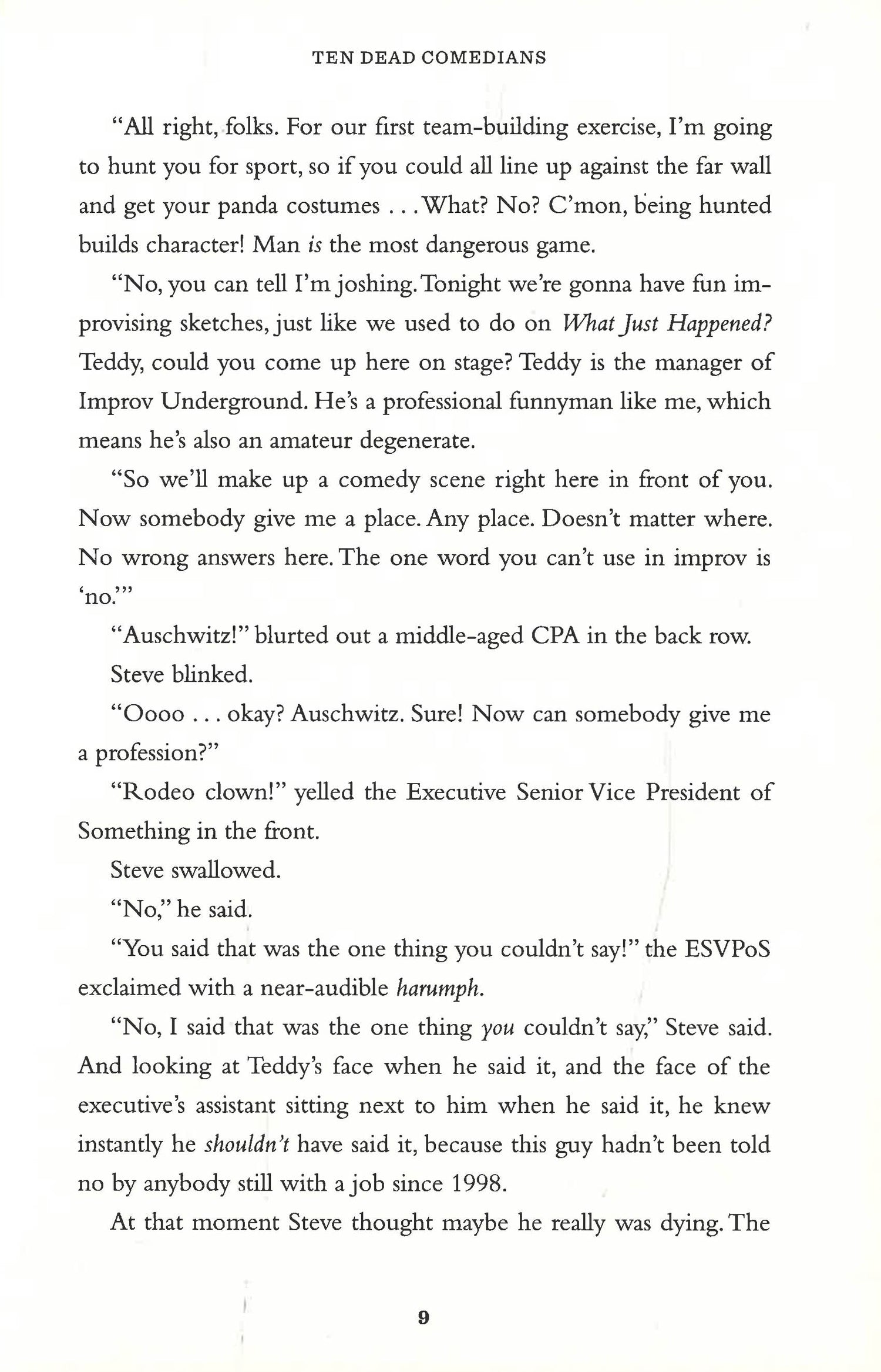 Fred Van Lente s brilliant debut is both an homage to the Golden Age of Mystery and a thoroughly contemporary show-business satire. As the story opens, nine comedians of various acclaim are summoned to the island retreat of legendary Hollywood funnyman Dustin Walker. The group includes a former late-night TV host, a washed-up improv instructor, a ridiculously wealthy blue collar comic, and a past-her-prime Vegas icon. All nine arrive via boat to find that every building on the island is completely deserted. Marooned without mobile phone service or wifi signals, they soon find themselves being murdered one by one. But who is doing the killing, and why?