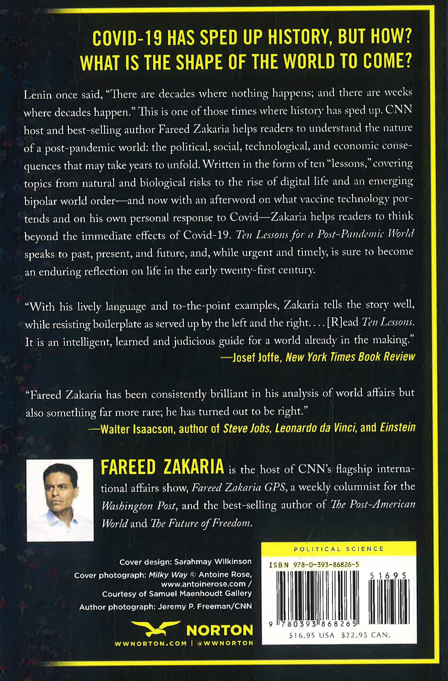 Lenin once said, There are decades when nothing happens and weeks when decades happen. This is one of those times when history has sped up. CNN host and best-selling author Fareed Zakaria helps readers to understand the nature of a post-pandemic world: the political, social, technological, and economic consequences that may take years to unfold. Written in the form of ten lessons, covering topics from natural and biological risks to the rise of digital life to an emerging bipolar world order, Zakaria helps readers to begin thinking beyond the immediate effects of COVID-19. Ten Lessons for a Post-Pandemic World speaks to past, present, and future, and, while urgent and timely, is sure to become an enduring reflection on life in the early twenty-first century.