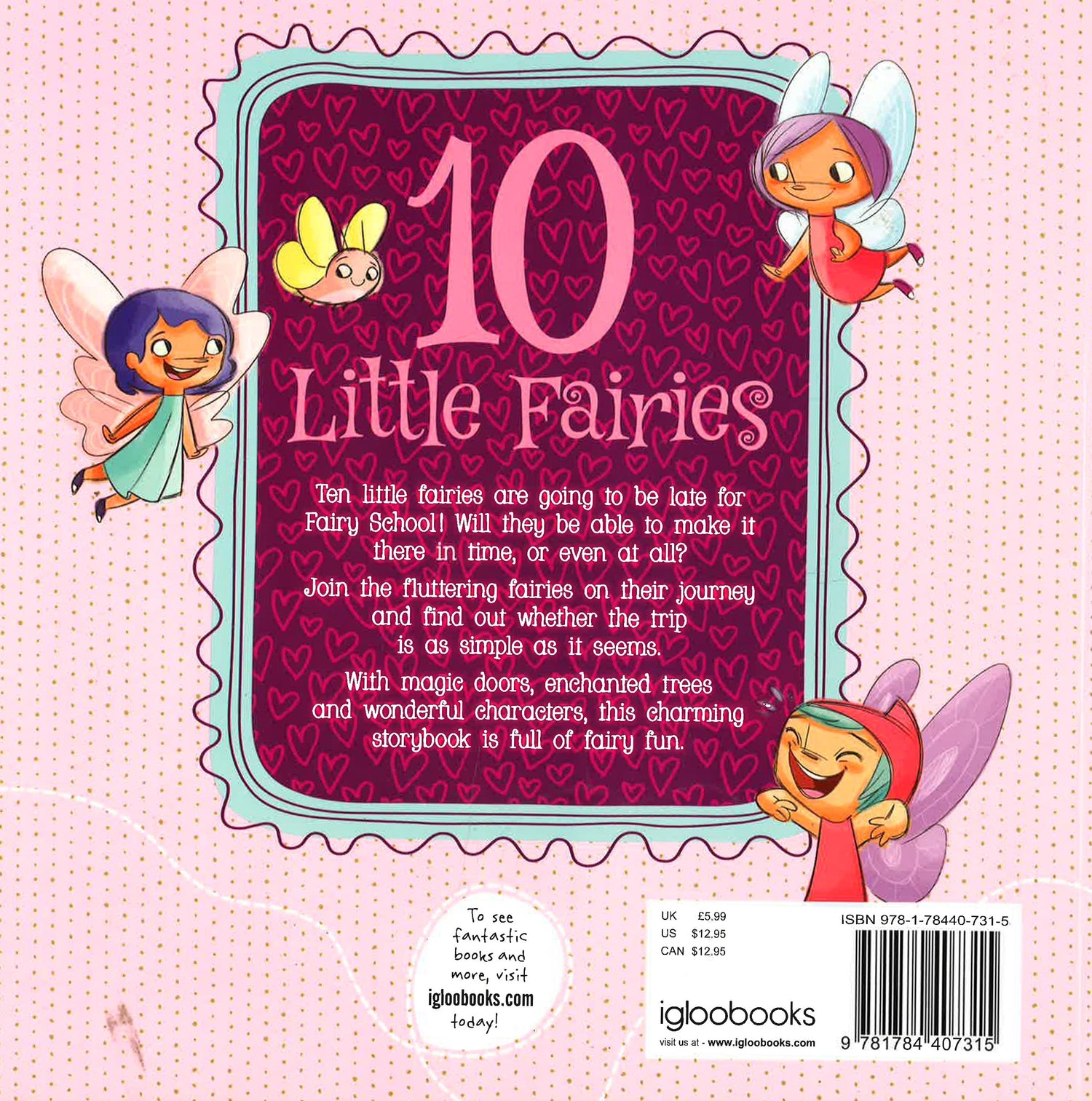 Ten Little fairies are going to be late for Fairy School! Will they be able to make it there in time, or even at all? Join the fluttering fairies on their journey and find out whether the trip is as simple as it seems. With magic, doors, enchanted trees and wonderful characters, this charming storybook is full of fairy fun.