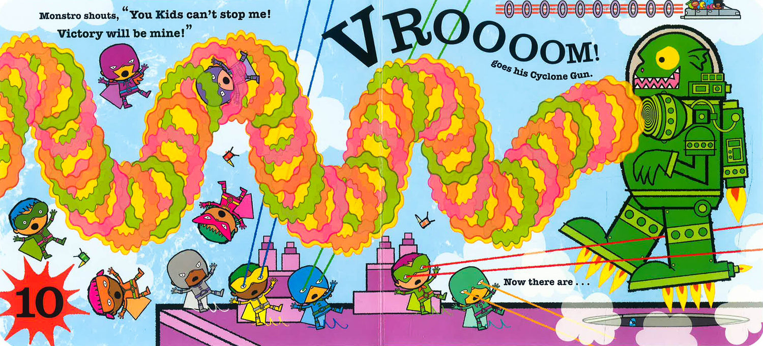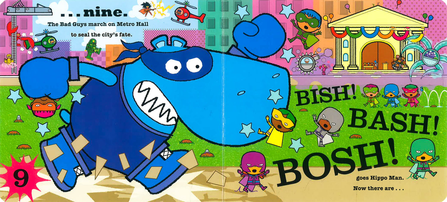 Count along with the Ten Little Superheroes in this action-packed, counting rhyme adventure! In a sturdy board book, perfect for little hands to hold.Ten Little Superheroes are on a mission to save the city ... But do they have the super-powers to defeat evil villain Monstro and his dastardly League of Bad Guys?Part traditional counting rhyme, part fun-filled story, Ten Little Superheroes is perfect for sharing together. Read the bouncy rhyming story.Count from ten to one and back again, as the Little Superheroes disappear then reappear. Spot and count the details on each page. And join in with all the great sound-words!The Ten Little series has sold over a million copies worldwide, and Ten Little Bookworms is a 2019 World Book Day pick.