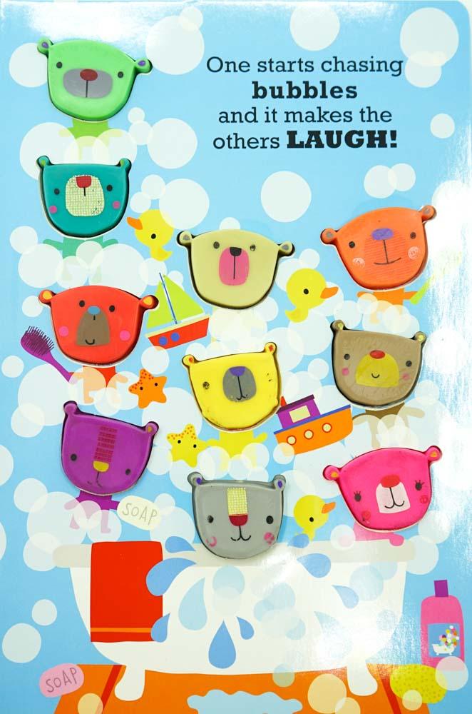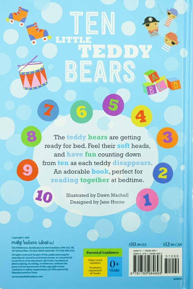 Introducing Ten Little Teddy Bears, an adorable counting-down book for young children. The ten little teddy bears are getting ready for bed, but, one by one, they get distracted and disappear! Children will love reading the sweet rhyme and counting down as the teddy bears disappear at the turn of each page. This tactile book offers plenty for young children to look at and explore, helping in their early learning!
