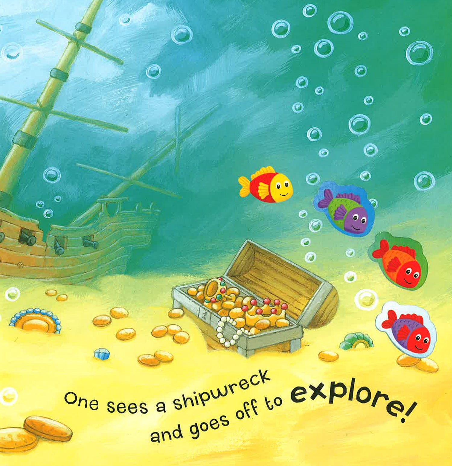 Follow the adventures of these bright, bold fish in this peek-through counting book!