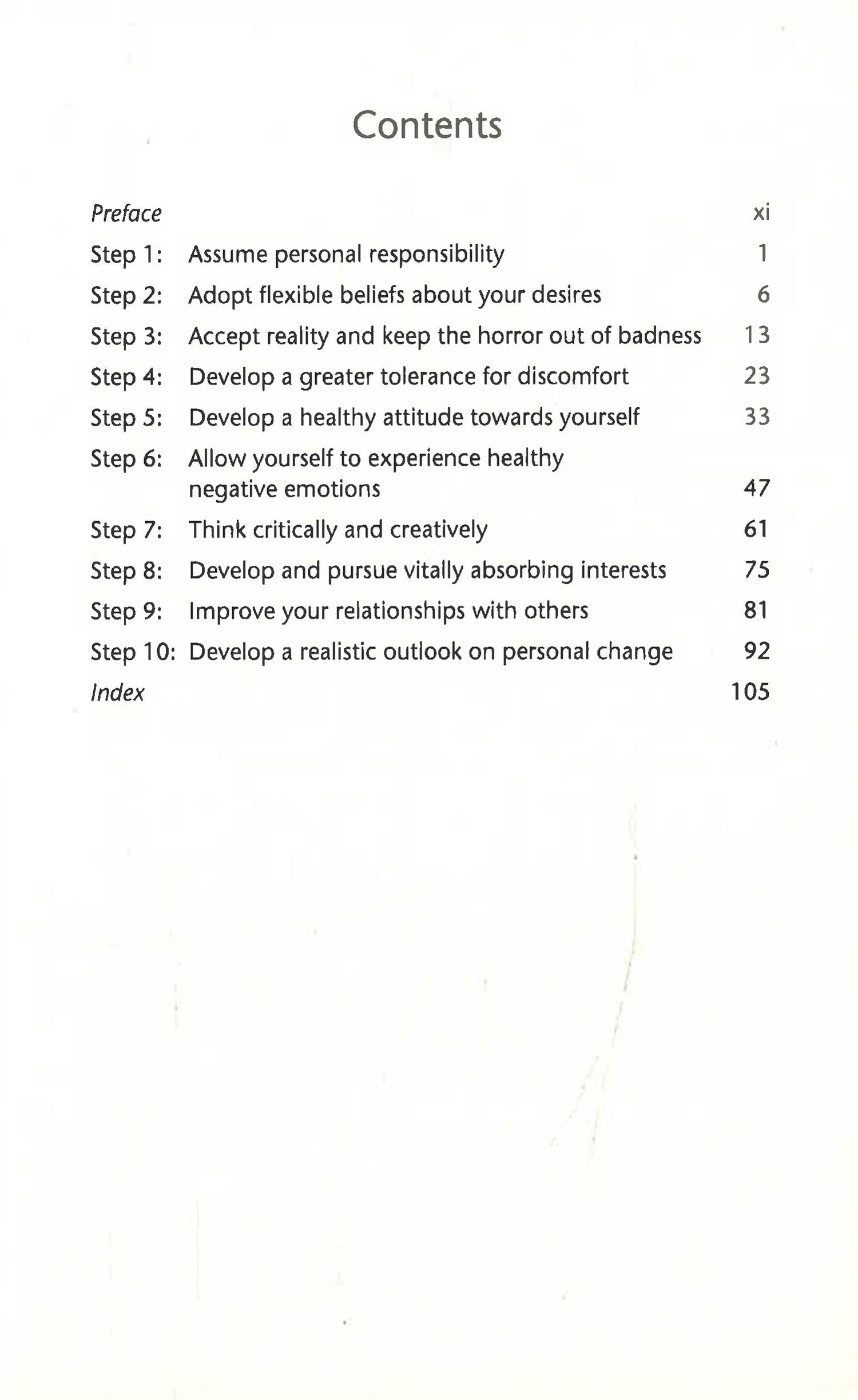 Written in a typically practical and straightforward style, this popular book shows how to develop a truly positive outlook. These ten steps outline skills to help people to take control, be flexible, accept reality, develop self-acceptance, accept change and improve relationships. Steps may be followed in order, or taken individually as required.