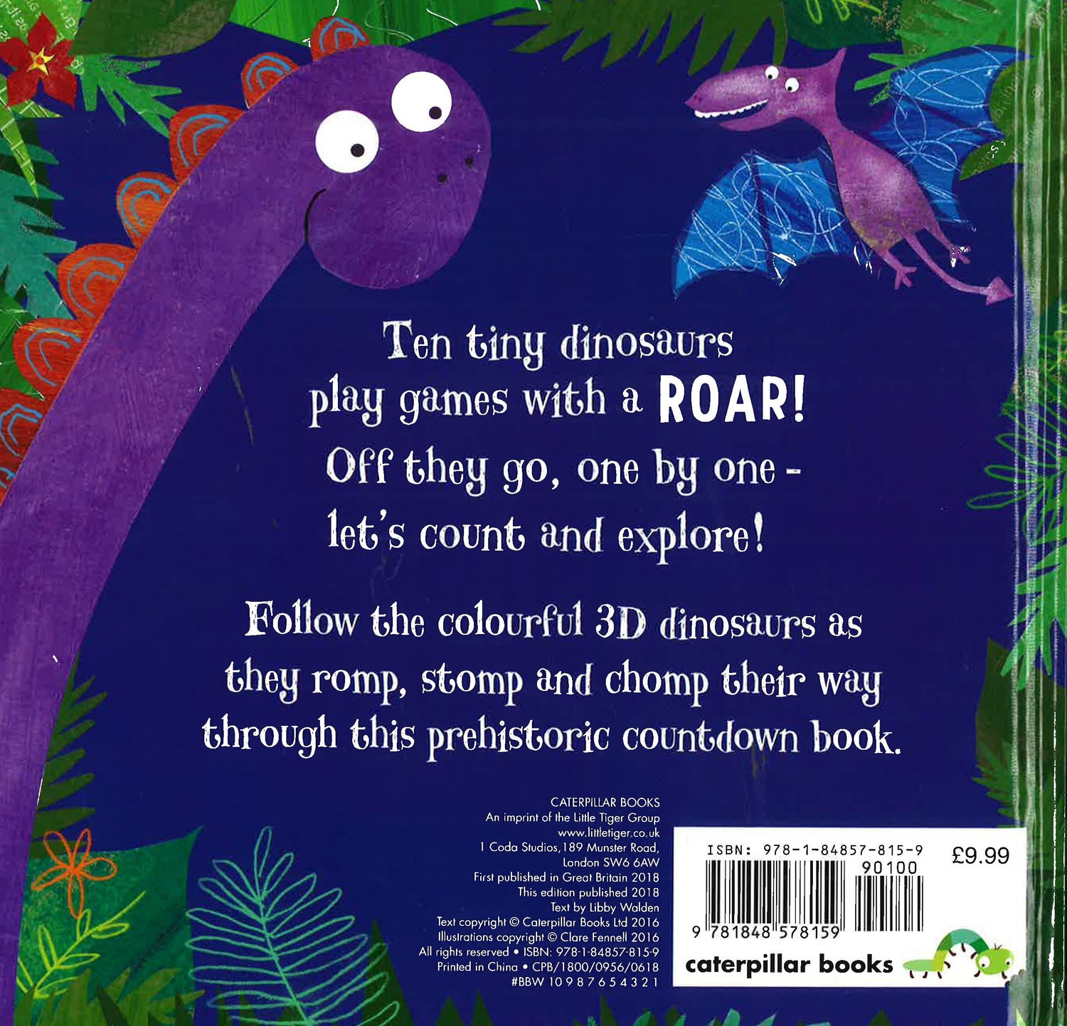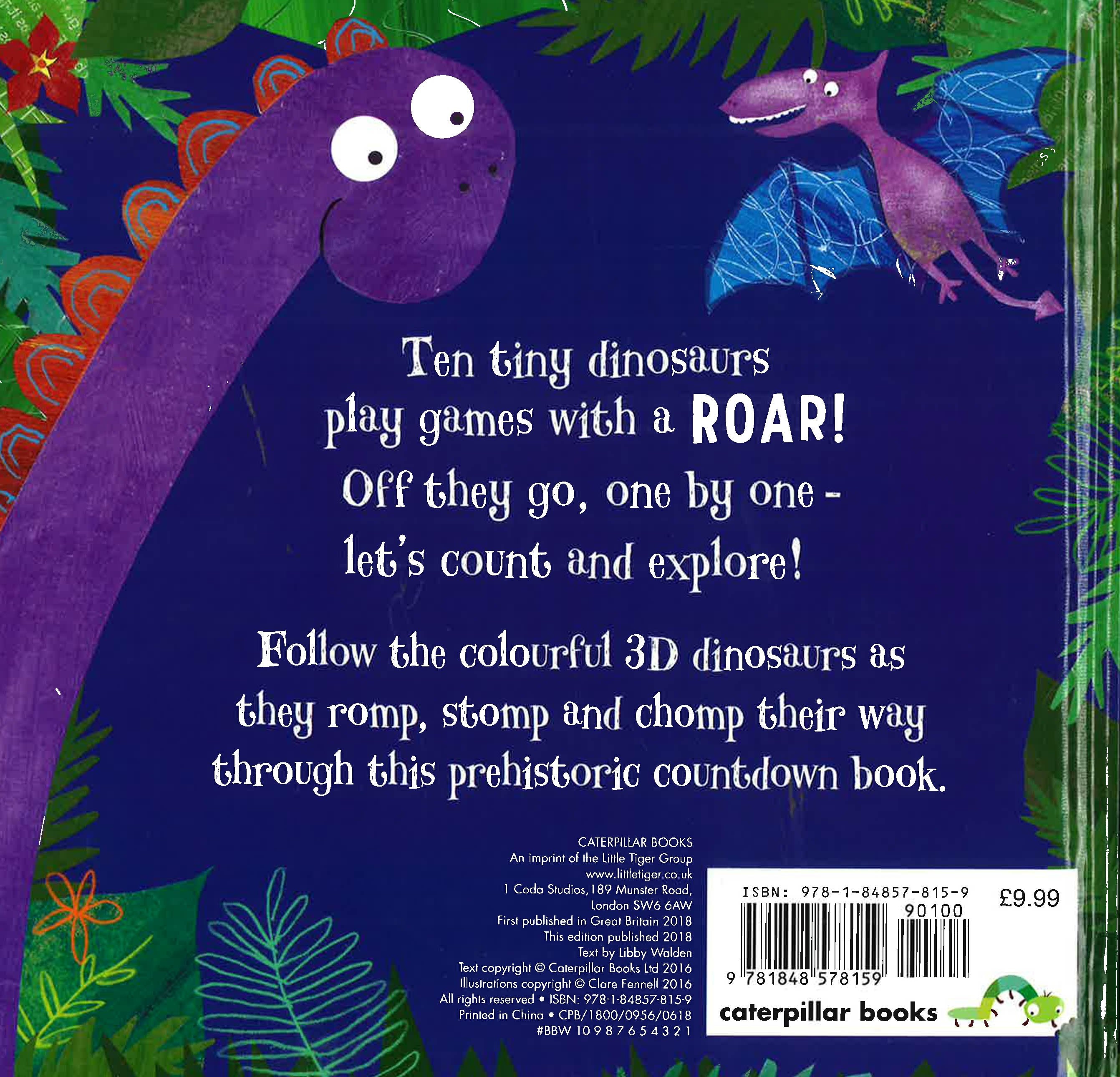 Ten tiny dinosaurs play games with a Roar! Off they go, one by one - let's count and explore! Follow the colourful 3D dinosaurs as they romp, stomp and chomp their way through this prehistoric countdown book.