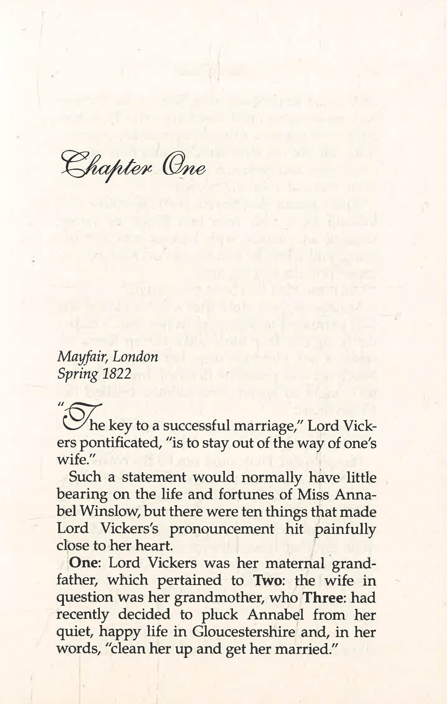 Annabel Winslow, a country girl through and through, has received an offer to go to London for the season. The eldest of a family of eight, she knows that a good marriage might be the only thing that will save her family from ruin. After a few weeks in town, Annabel attracts the attention of the Earl of Newbury. The thought of submitting to him makes her skin crawl, but she is practical and determined to do her duty. Even when Sebastian Grey comes on the scene.
