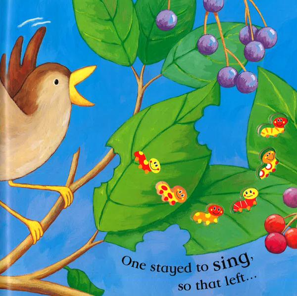 Follow the adventures of these bright, bold caterpillars in this peek-through counting book! Young readers will delight in the colorful, tactile pages as they watch the die-cut caterpillars decrease from 10 to 1 with each turn of the page.