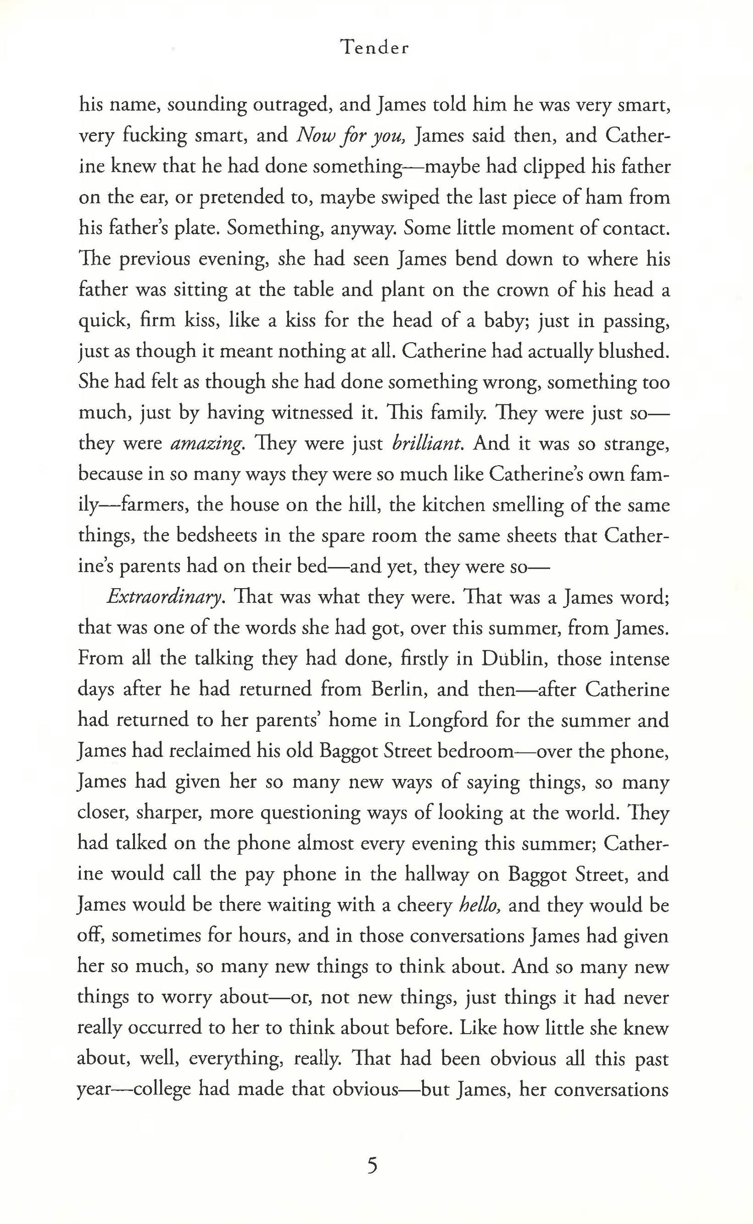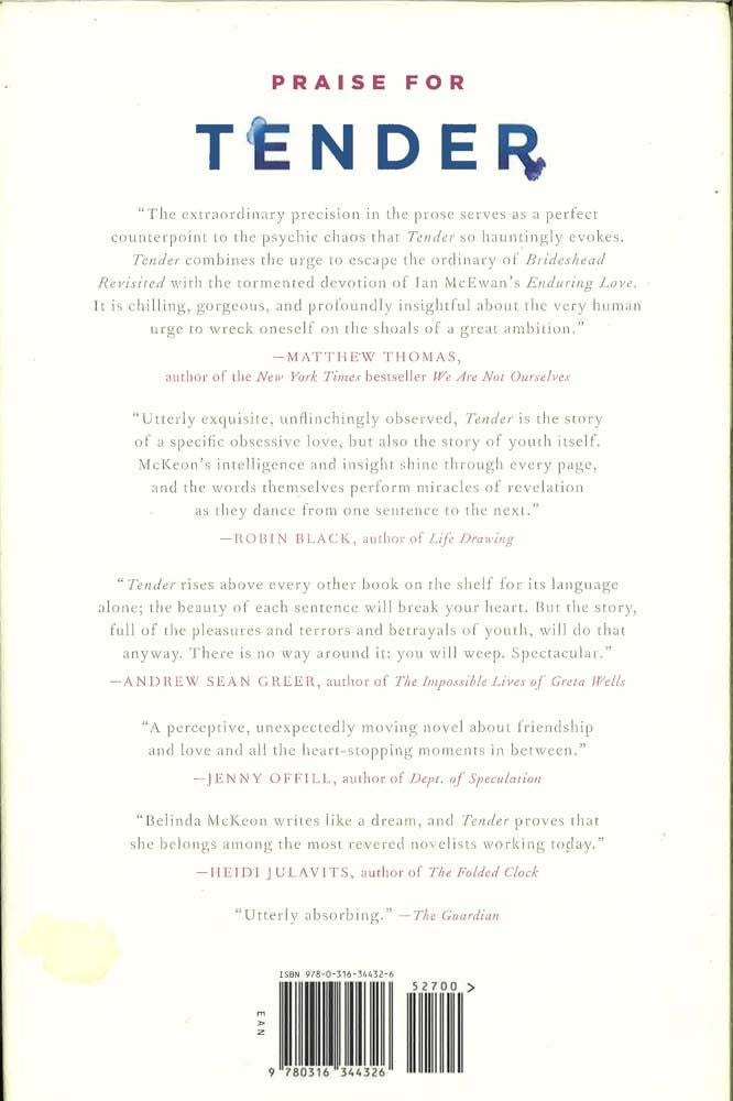 A searing novel about longing, intimacy and obsession from the award-winning author of Solace. When they meet in Dublin in the late nineties, Catherine and James become close as two friends can be. She is a sheltered college student, he an adventurous, charismatic young artist. In a city brimming with possibilities, he spurs her to take life on with gusto. But as Catherine opens herself to new experiences, James's life becomes a prison; as changed as the new Ireland may be, it is still not a place in which he feels able to truly be himself. Catherine, grateful to James and worried for him, desperately wants to help--but as time moves on, and as life begins to take the friends in difference directions, she discovers that there is a perilously fine line between helping someone and hurting him further. When crisis hits, Catherine finds herself at the mercy of feelings she cannot control, leading her to jeopardize all she holds dear. By turns exhilarating and devastating, Tender is a dazzling exploration of human relationships, of the lies we tell ourselves and the lies we are taught to tell. It is the story of first love and lost innocence, of discovery and betrayal. A tense high-wire act with keen psychological insights, this daring novel confirms Belinda McKeon as a major voice in contemporary fiction, joining the ranks of the masterful Edna O'Brien and Anne Enright.