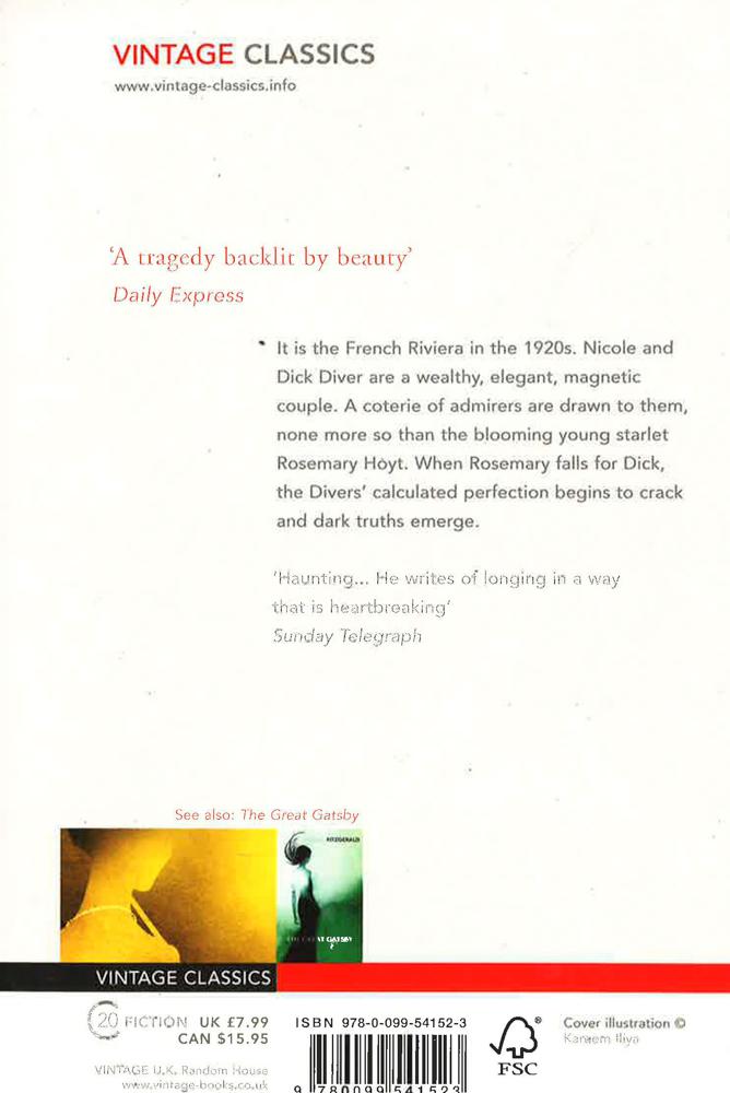 Published in 1934, Tender Is the Night was one of the most talked-about books of the year. "It's amazing how excellent much of it is," Ernest Hemingway said to Maxwell Perkins. "I will say now," John O'Hara wrote Fitzgerald, "Tender Is the Night is in the early stages of being my favorite book, even more than This Side of Paradise." And Archibald MacLeish exclaimed: "Great God, Scott...You are a fine writer. Believe it -- not me." Set on the French Riviera in the late 1920s, Tender Is the Night is the tragic romance of the young actress Rosemary Hoyt and the stylish American couple Dick and Nicole Diver. A brilliant young psychiatrist at the time of his marriage, Dick is both husband and doctor to Nicole, whose wealth goads him into a lifestyle not his own, and whose growing strength highlights Dick's harrowing demise. A profound study of the romantic concept of character -- lyrical, expansive, and hauntingly evocative -- Tender Is the Night, Mabel Dodge Luhan remarked, raised F. Scott Fitzgerald to the heights of "a modern Orpheus.