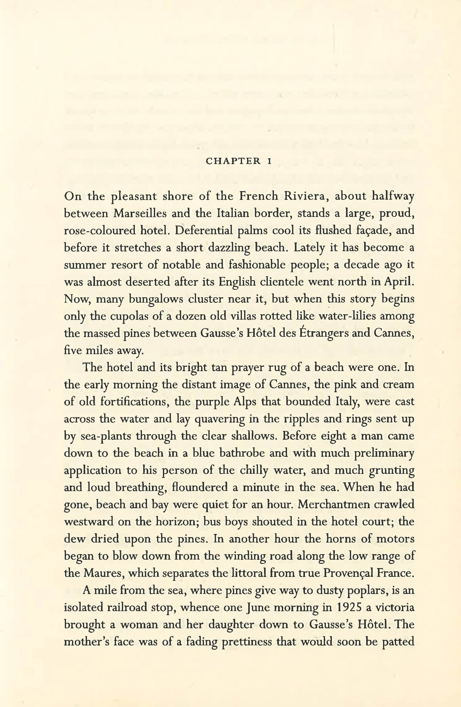This final complete novel by Fitzgerald is set in the 1920s and explores the world of moneyed Americans who took refuge from a rapidly changing America in an ex-pat enclave on the French Riviera.