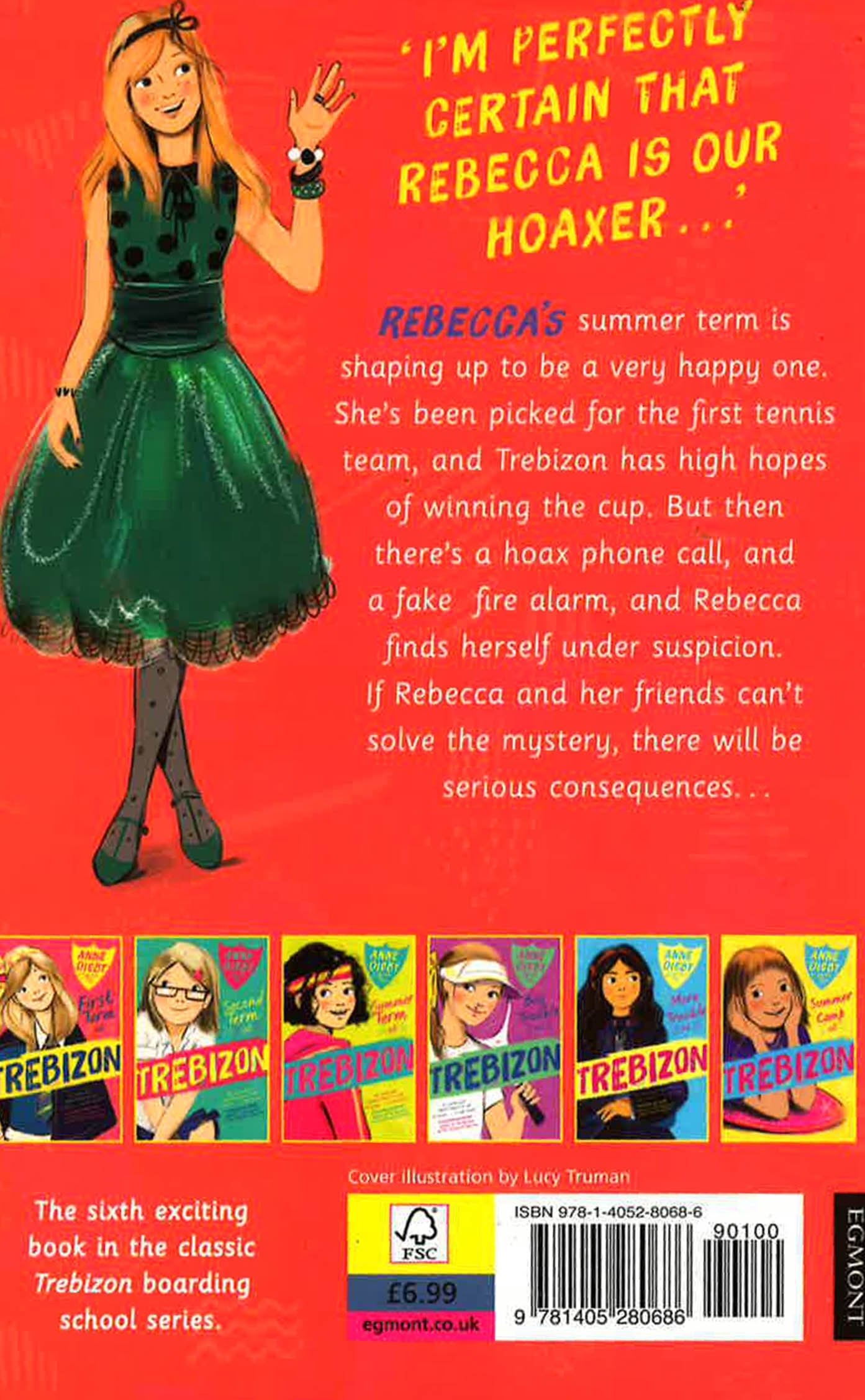 Join Rebecca and her friends at Trebizon, perfect for fans of Enid Blyton's Malory Towers and St Clare's. Rebecca's summer term is shaping up to be a very happy one. She's been picked for the first tennis team, and Trebizon has high hopes of winning the cup. But then there's a hoax phone call, and a fake fire alarm, and Rebecca finds herself under suspicion. If Rebecca and her friends can't solve the mystery, there will be serious consequences . . .