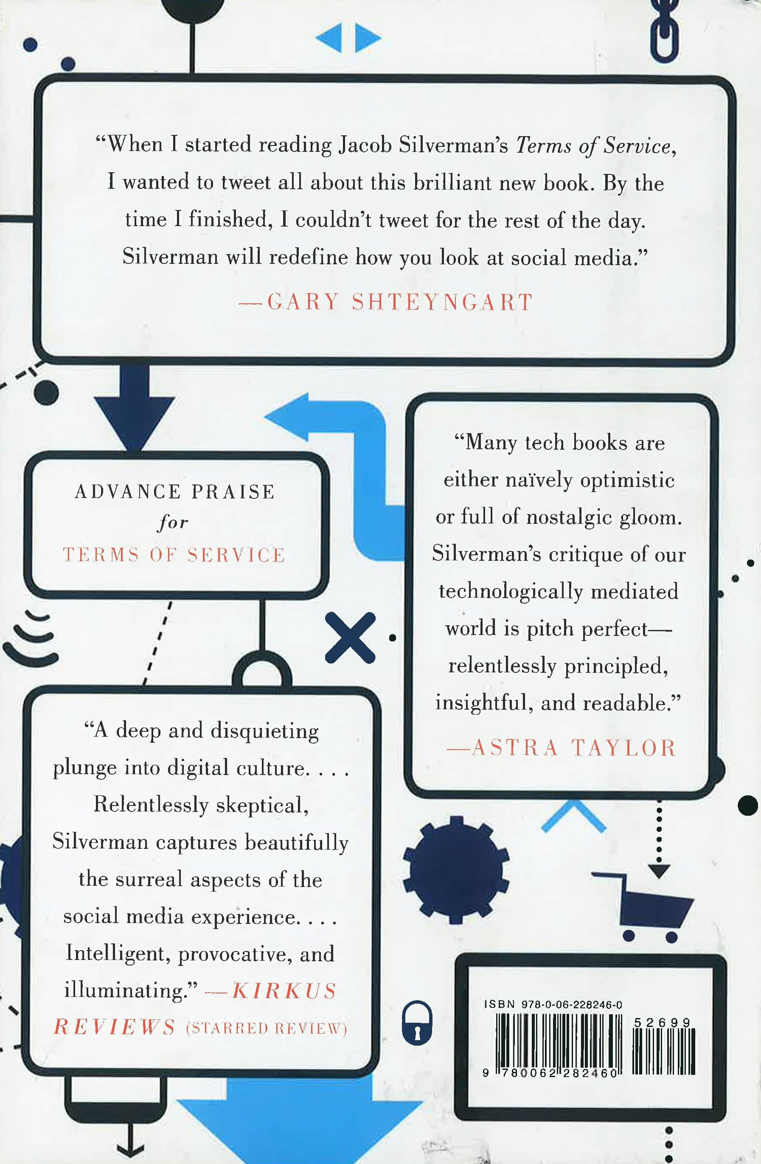 Social networking has grown into a staple of modern society, but its continued evolution is becoming increasingly detrimental to our lives. Shifts in communication and privacy are affecting us more than we realize or understand.Terms of Servicecrystalizes this current moment in technology and contemplates its implications the identity-validating pleasures and perils of online visibility our newly adopted view of daily life through the lens of what is share-worthy; and the surveillance state operated by social media platformsFacebook, Google, Twitter, and othersto mine our personal data for advertising revenue, an invasion of our lives that is as pervasive as government spying. Jacob Silverman calls for social media users to take back ownership of their digital selves from the Silicon Valley corporations who claim to know what best for them. Integrating politics, sociology, national security, pop culture, and technology, he reveals the surprising conformity at the heart of Internet cultureexplaining how social media companies engineer their products to encourage shallow engagement and discourage dissent. Reflecting on the collapsed barriers between our private and public lives, Silverman brings into focus the inner conflict we feel when deciding what to share and what to and explains how we can take the steps we need to free ourselves from its grip. *This book may have remainder mark*