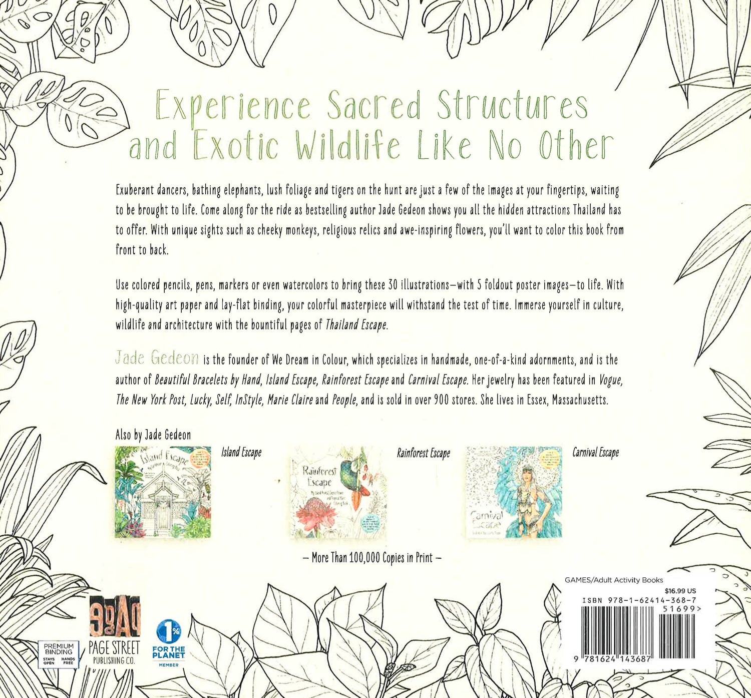 Travel to tropical palm-lined beaches, picturesque soaring mountains and hidden temples in the lush jungle as you color to escape the stresses of modern life and experience the culture and beauty of Southeast Asia. Inspired by travels abroad, award-winning illustrator Jade Gedeon takes you on a tour through the many islands that make up this travel destination. JadeGedeon's jewelry has been sold in Anthropologie and 900 other boutiques around the world, and her paintings have been exhibited in Trinidad where she was raised. Artists who enjoy other adult colouring books will love the high quality, thick premium art paper that highlights the varied effects of coloured pencils, markers and paints. Blank backs to each design and perforated edges mean readers can tear out their finished artwork to display. It includes 5 large spreads that fold out. Readers can enjoy a grand, immersive colouring experience that sets our book apart from others on the market.