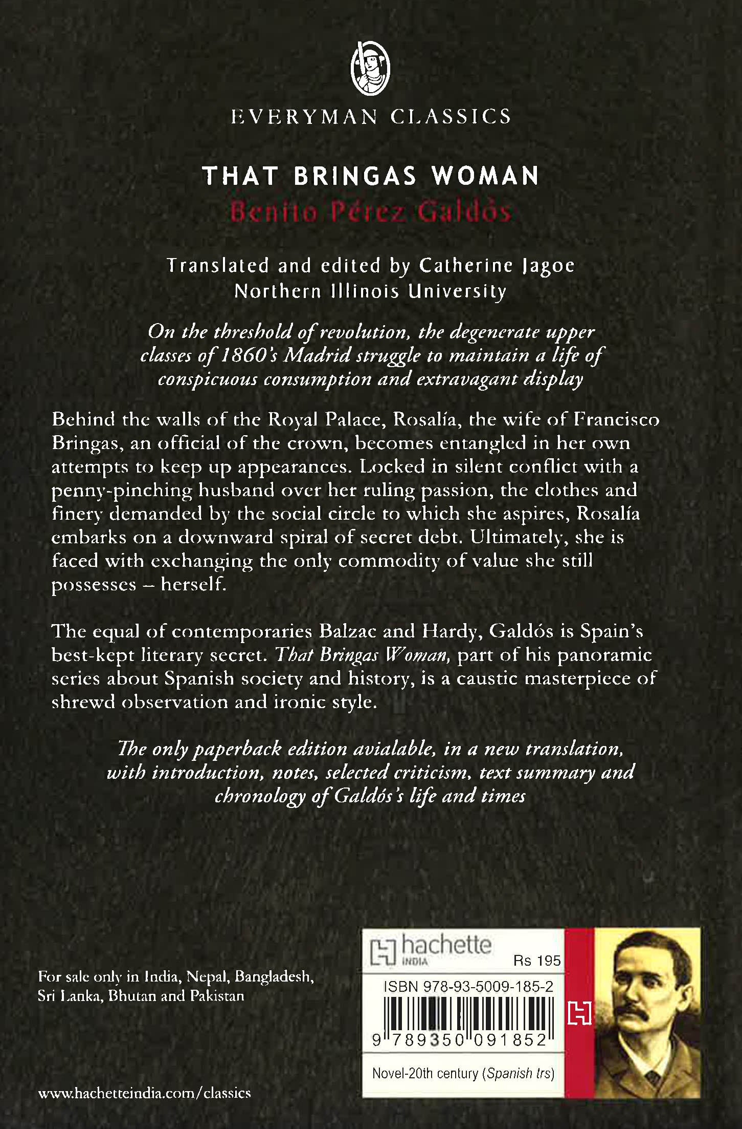 On the threshold of revolution, the degenerate upper classes of 1860s Madrid struggle to maintain a life of conspicuous consumption and extravagant display Behind the walls of the Royal Palace, Rosal?a, the wife of Francisco Bringas, an official of the crown, becomes entangled in her own attempts to keep up appearances. Locked in silent conflict with a penny-pinching husband over her ruling passion, the clothes and finery demanded by the social circle to which she aspires, Rosal?a embarks on a downward spiral of secret debt. Ultimately, she is faced with exchanging the only commodity of value she still possesses - herself. The equal of contemporaries Balzac and Hardy, Gald?s is Spains best-kept literary secret. That Bringas Woman, part of his panoramic series about Spanish society and history, is a caustic masterpiece of shrewd observation and ironic style. The only paperback edition avialable, in a new translation, with introduction, notes, selected criticism, text summa