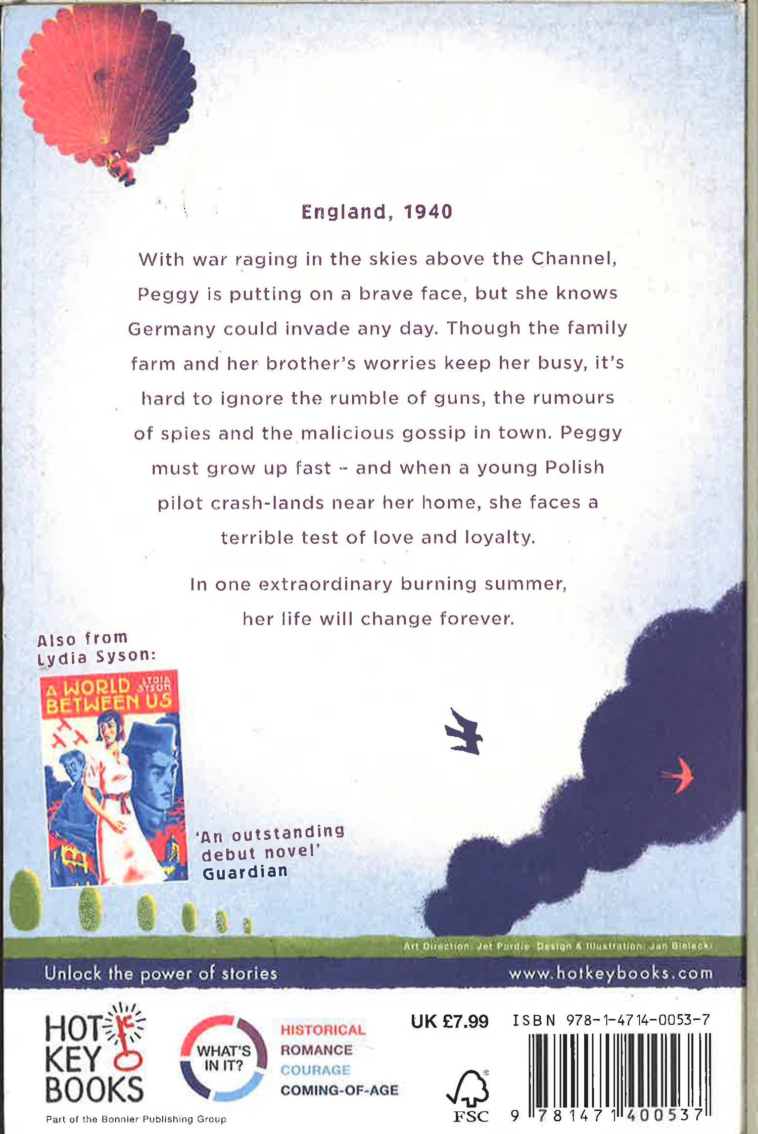 Romney Marsh, July 1940. When invasion threatens, you have to grow up quickly. Sixteen-year-old Peggy has been putting on a brave face since the fall of France, but now the enemy is overhead, and the rules are changing all the time. Staying on the right side of the law proves harder than she expects when a plane crash-lands in the Marsh: it's Peggy who finds its pathetic, broken pilot; a young Polish man, Henryk, who stays hidden in a remote church, secretly cared for by Peggy. As something more blossoms between the two, Peggy's brother Ernest's curiosity peaks and other secrets come to light, forcing Peggy and Henryk to question all the loyalties and beliefs they thought they held dear.
